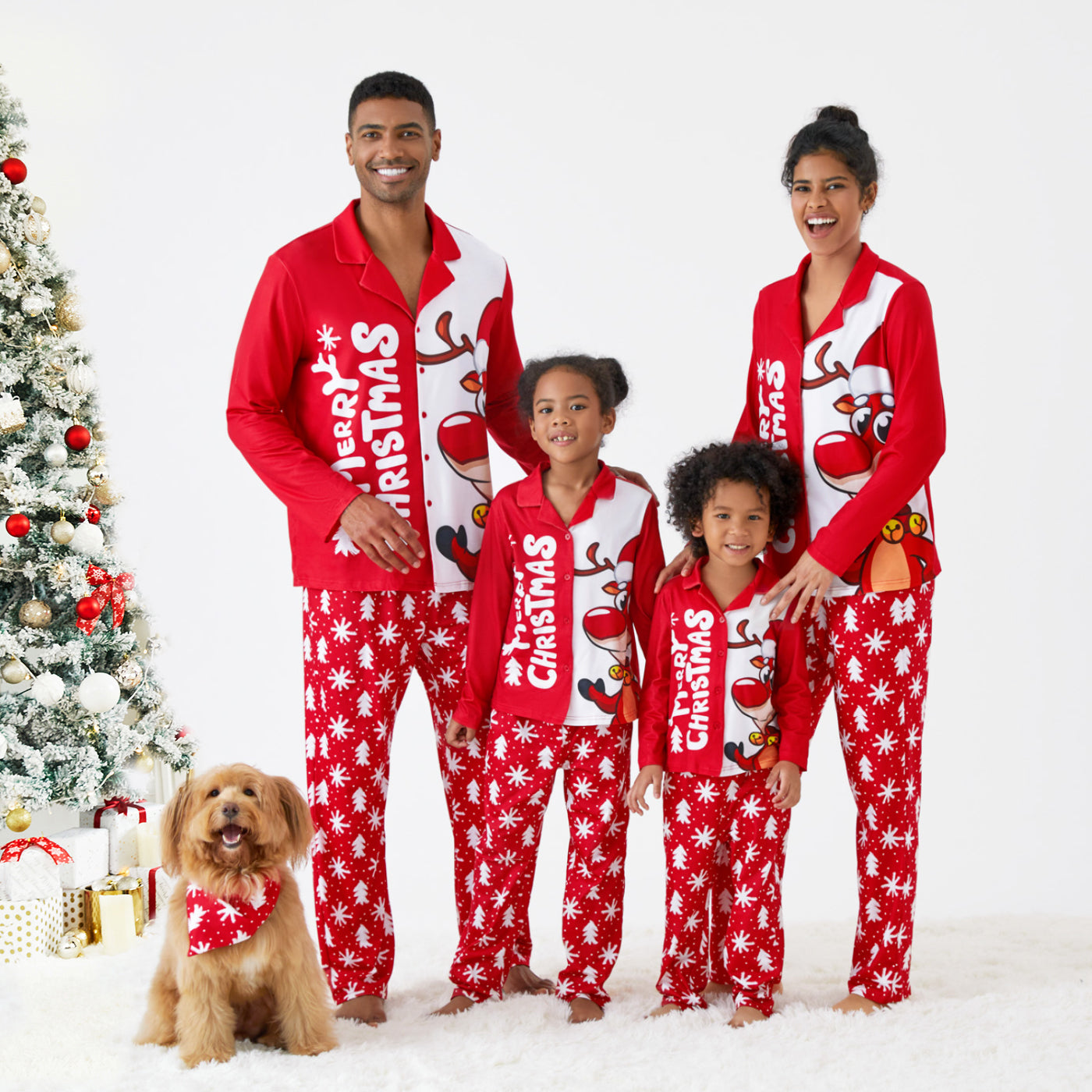 Christmas Family Matching Reindeer & Letters Print Long-sleeve Pajamas Sets(Flame resistant)