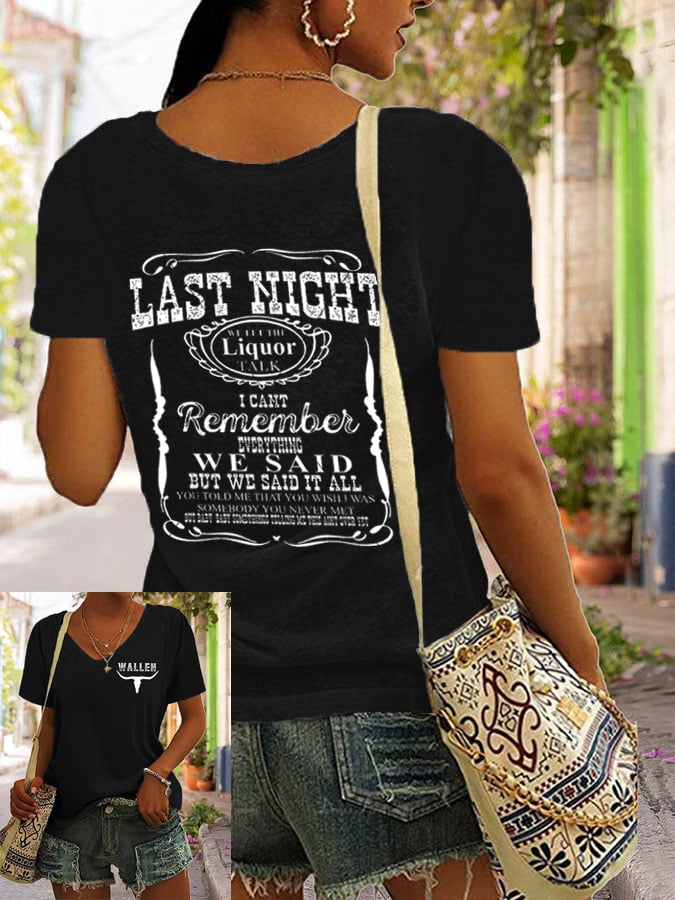 Women's Wallen Last Night We Let The Liquor Talk Print V-Neck T-Shirt