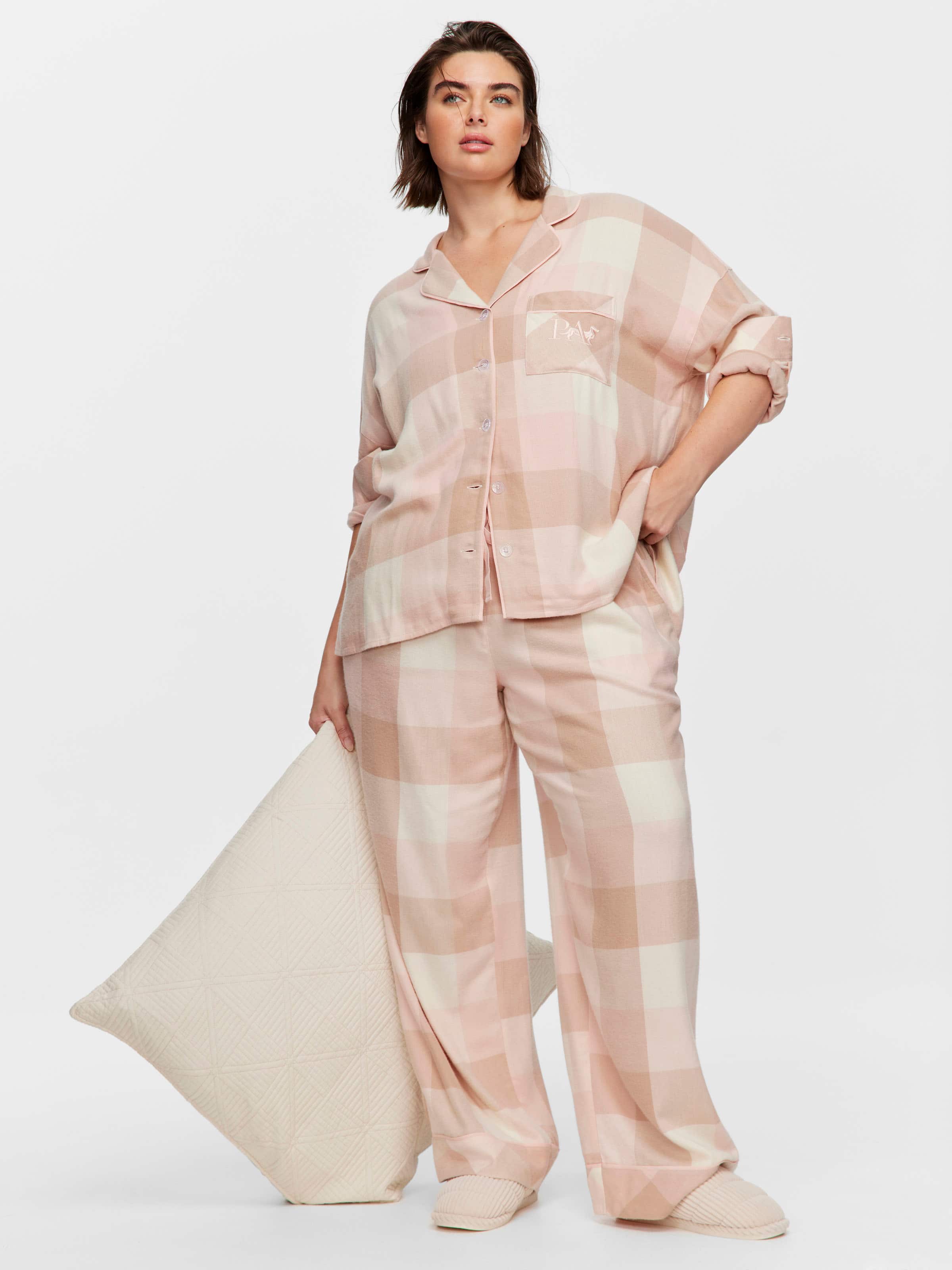P.A. Plus Peach Check Flannelette Leg Warmer Pj Pant