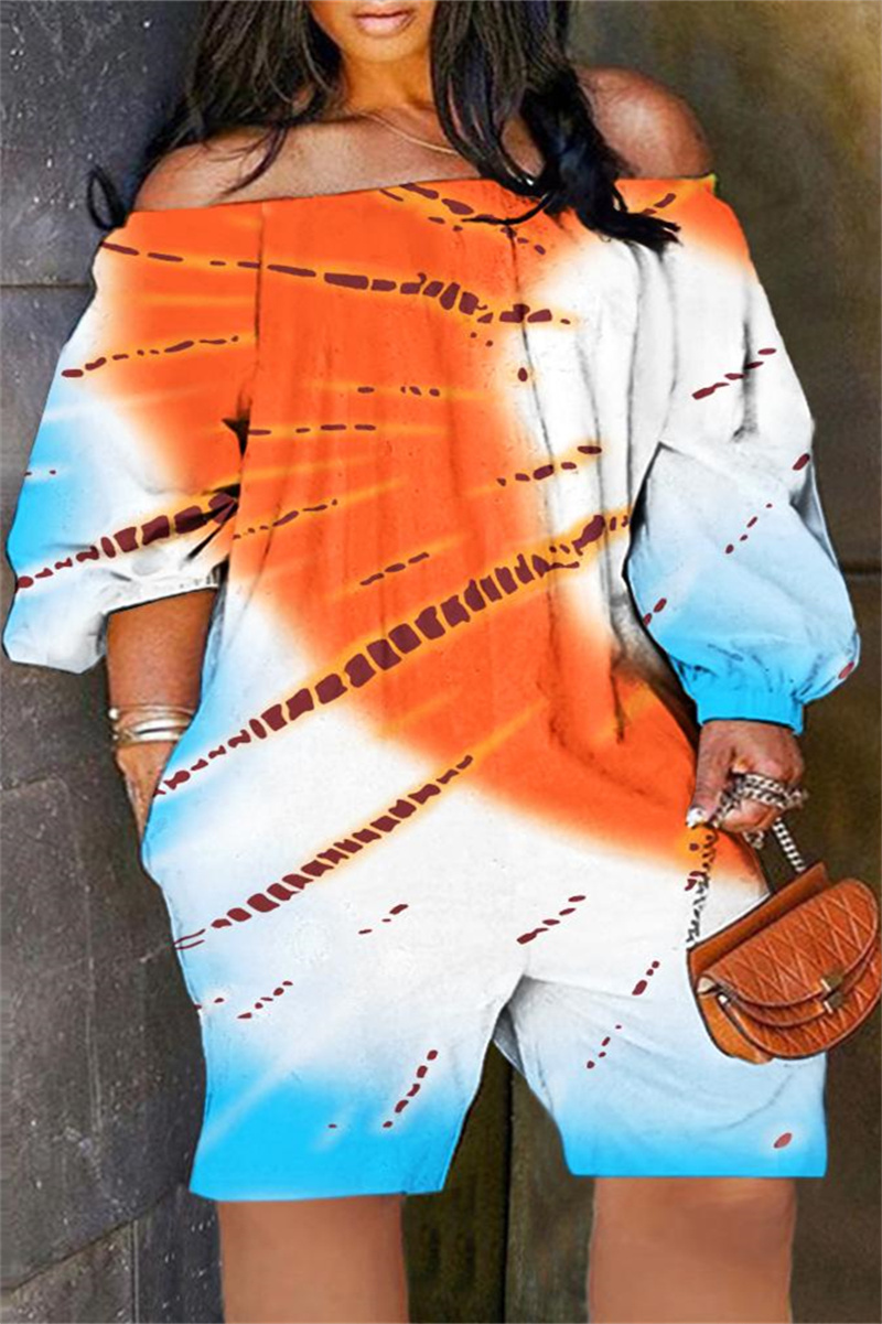 Orange Casual Basis Mixed Printing Printing Off the Shoulder Loose Jumpsuits