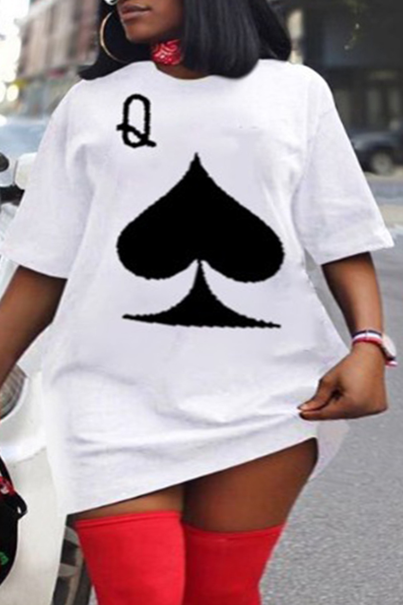 Plus Size White Casual Street Print Patchwork O Neck T-shirt Dress Dresses