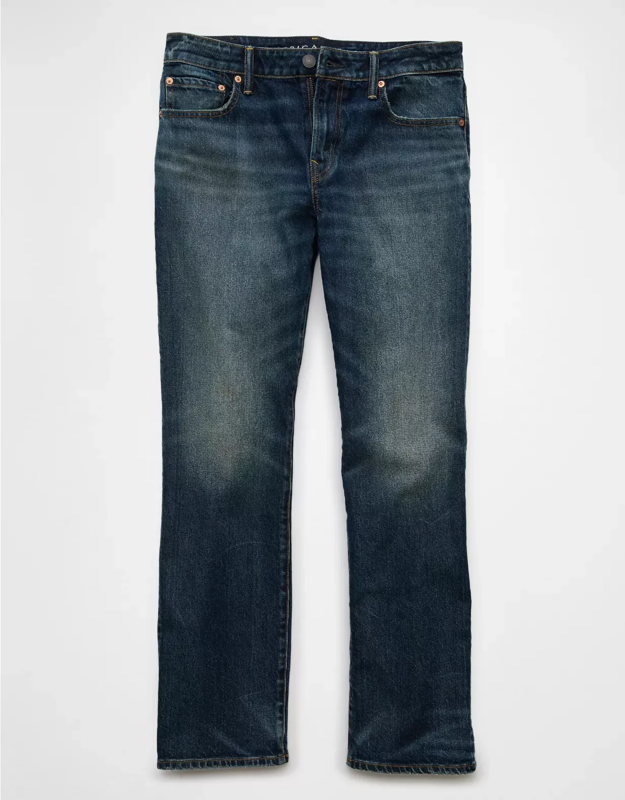 Straight through the thigh with a bootcut leg opening. Crafted with TENCEL™ fibers for max comfort (without losing that authentic jean look!)EasyFlex: The authentic denim look you want with just enough flex for all-day comfort.Comfortable and never loses its shapeDark washMaterials & Care