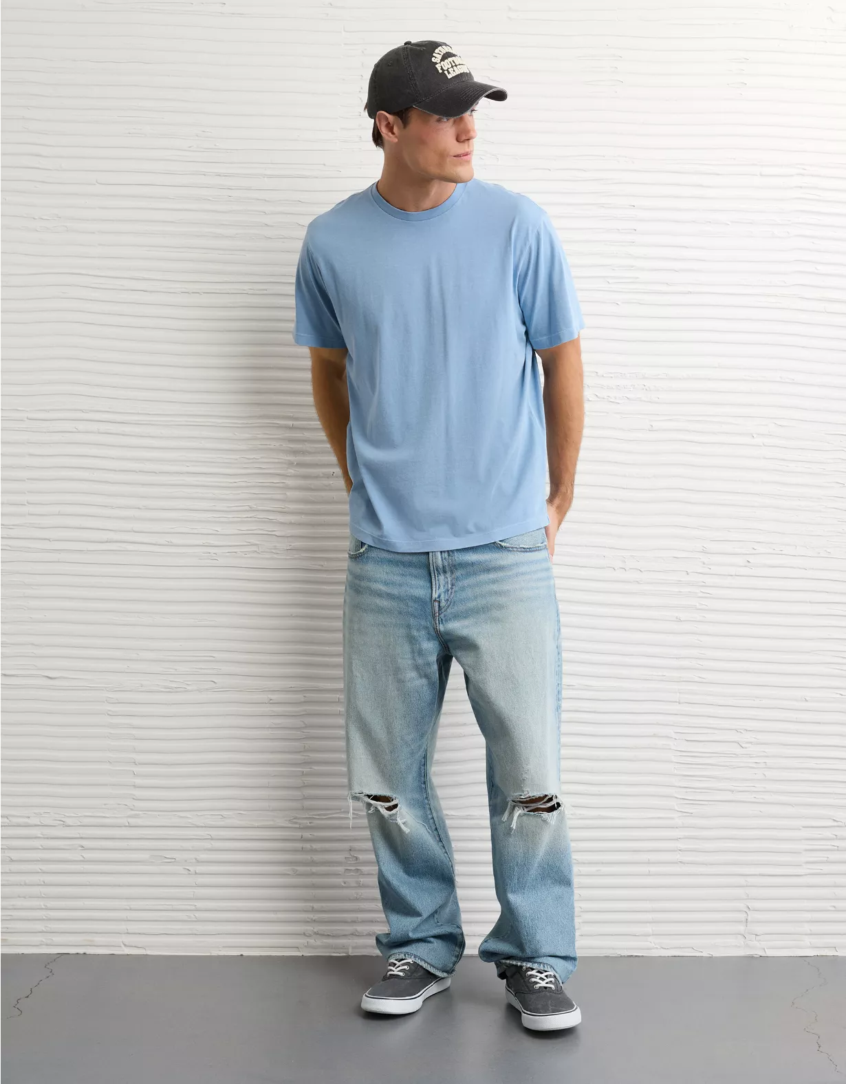 Your go-to for comfort and breathability, this midweight tee is the perfect layer for any season.Super soft midweight cotton jerseyCrew neckShort sleevesStraight hemThis shirt is Real Good: Made with the planet in mind & a promise to continue to do better.Materials & Care