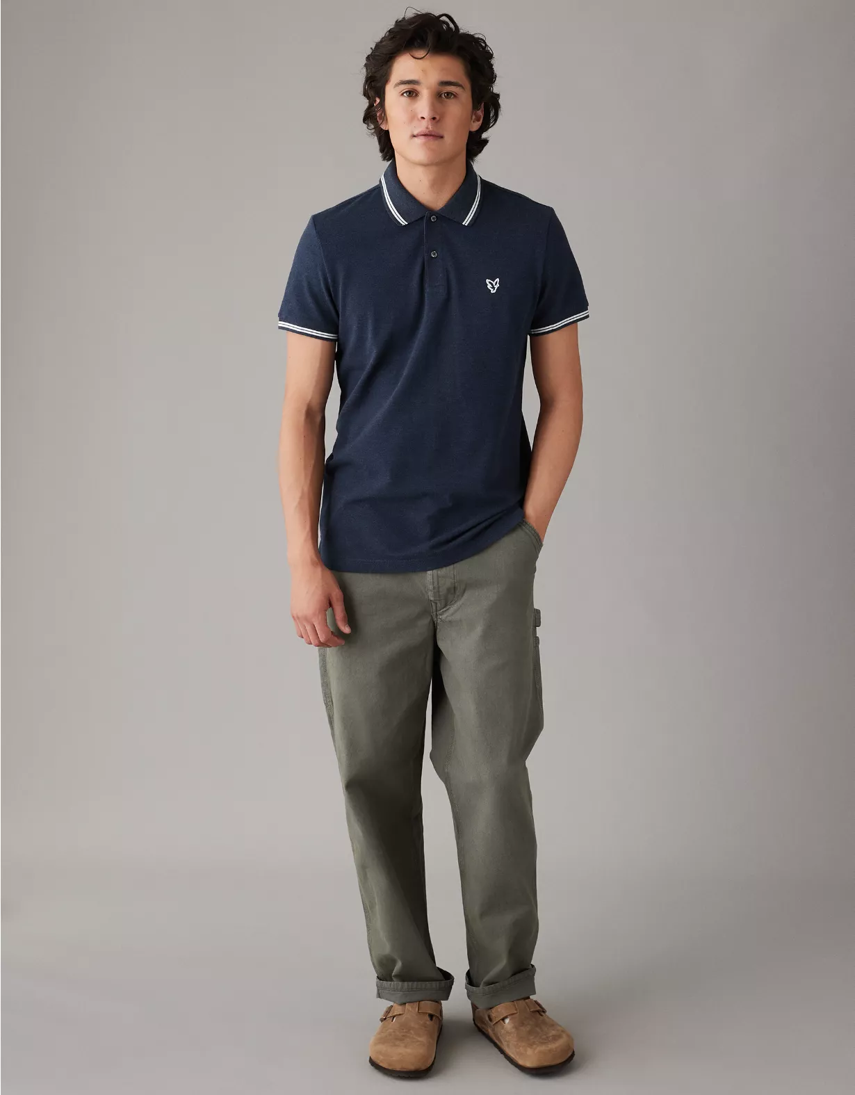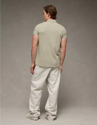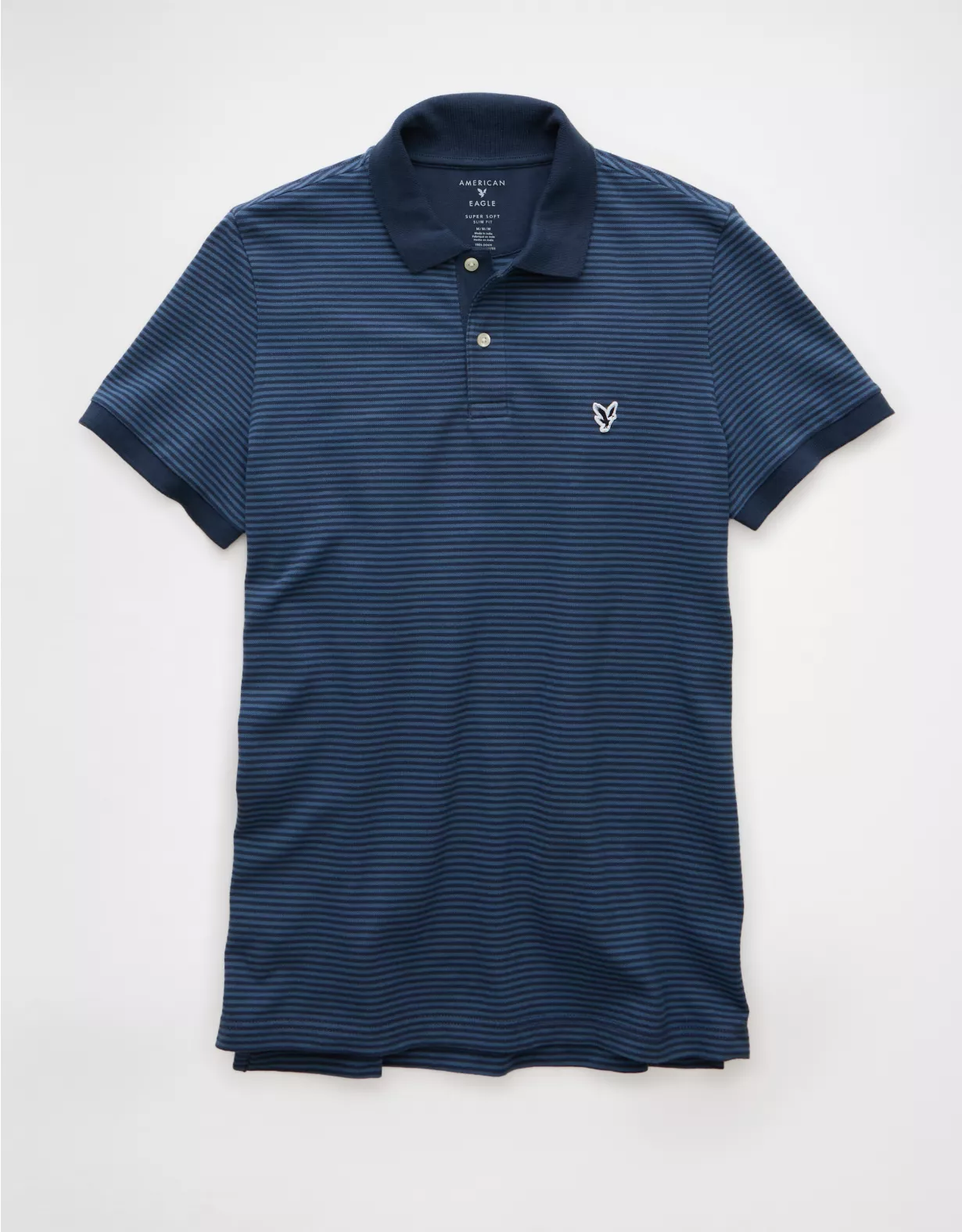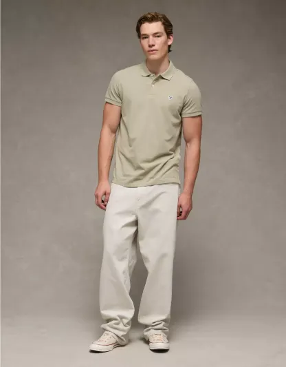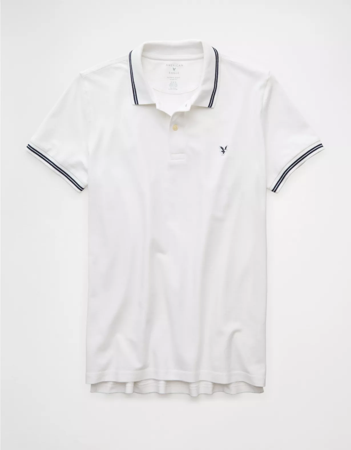 A classic style with legendary comfort, now in a slim fit.Super soft fabric with stretchCollared neck with polo button placketSmall embroidered eagle logoContrast tippingStraight hemThis shirt is Real Good: made with the planet in mind and a promise to continue to do better.Materials & Care
