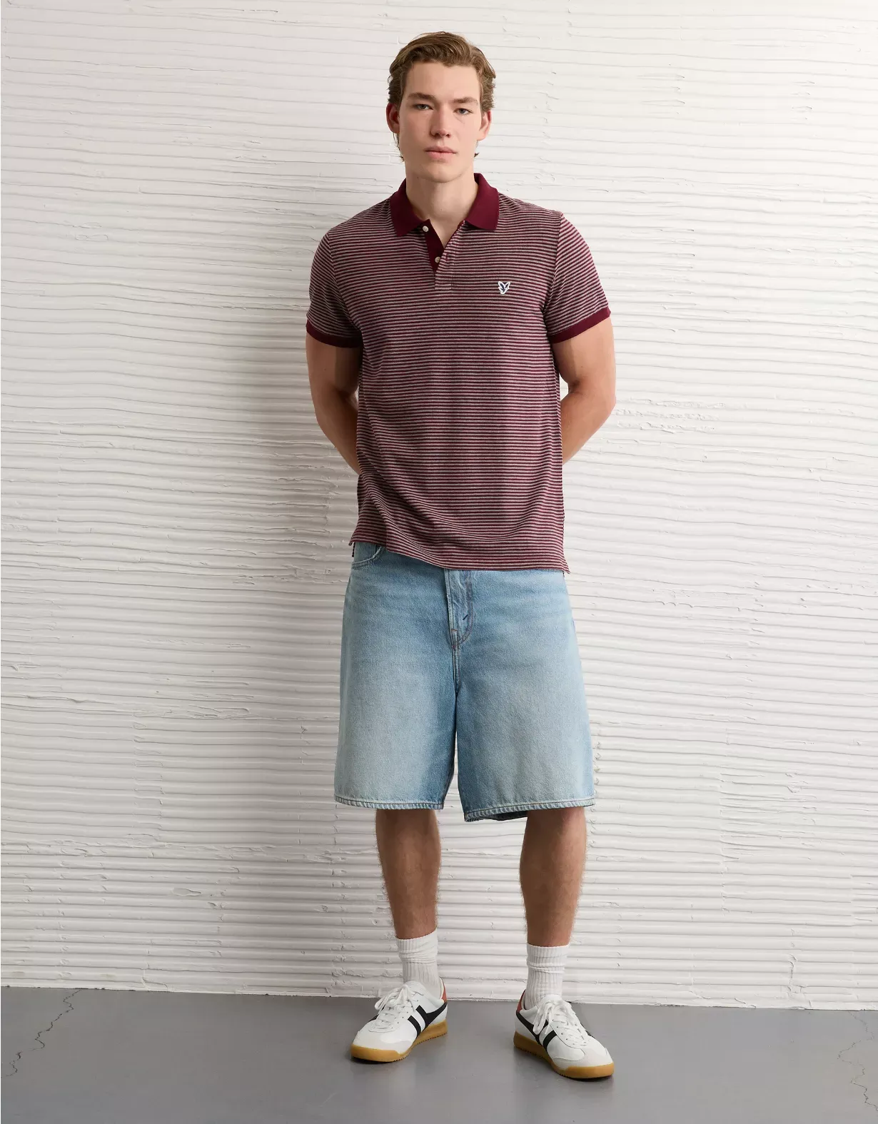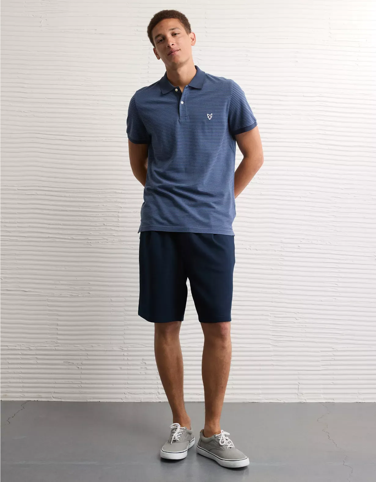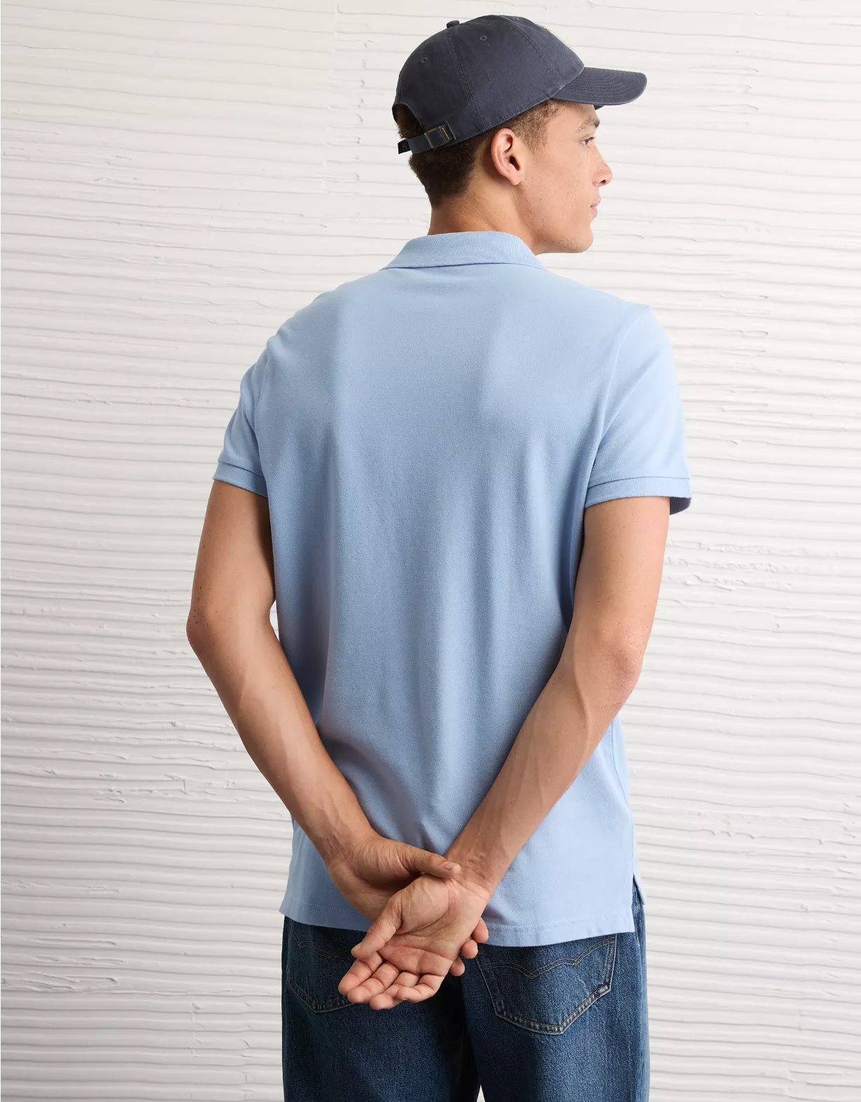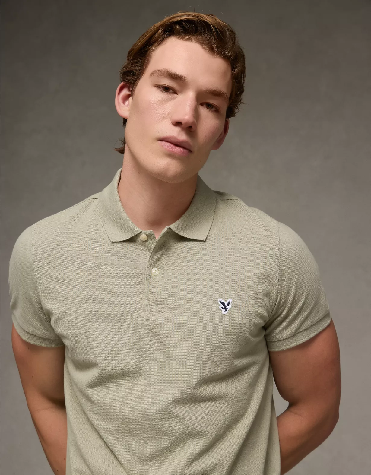 A classic style with legendary comfort, now in a slim fit.Super soft fabric with stretchCollared neck with polo button placketSmall embroidered eagle logoContrast tippingStraight hemThis shirt is Real Good: made with the planet in mind and a promise to continue to do better.Materials & Care