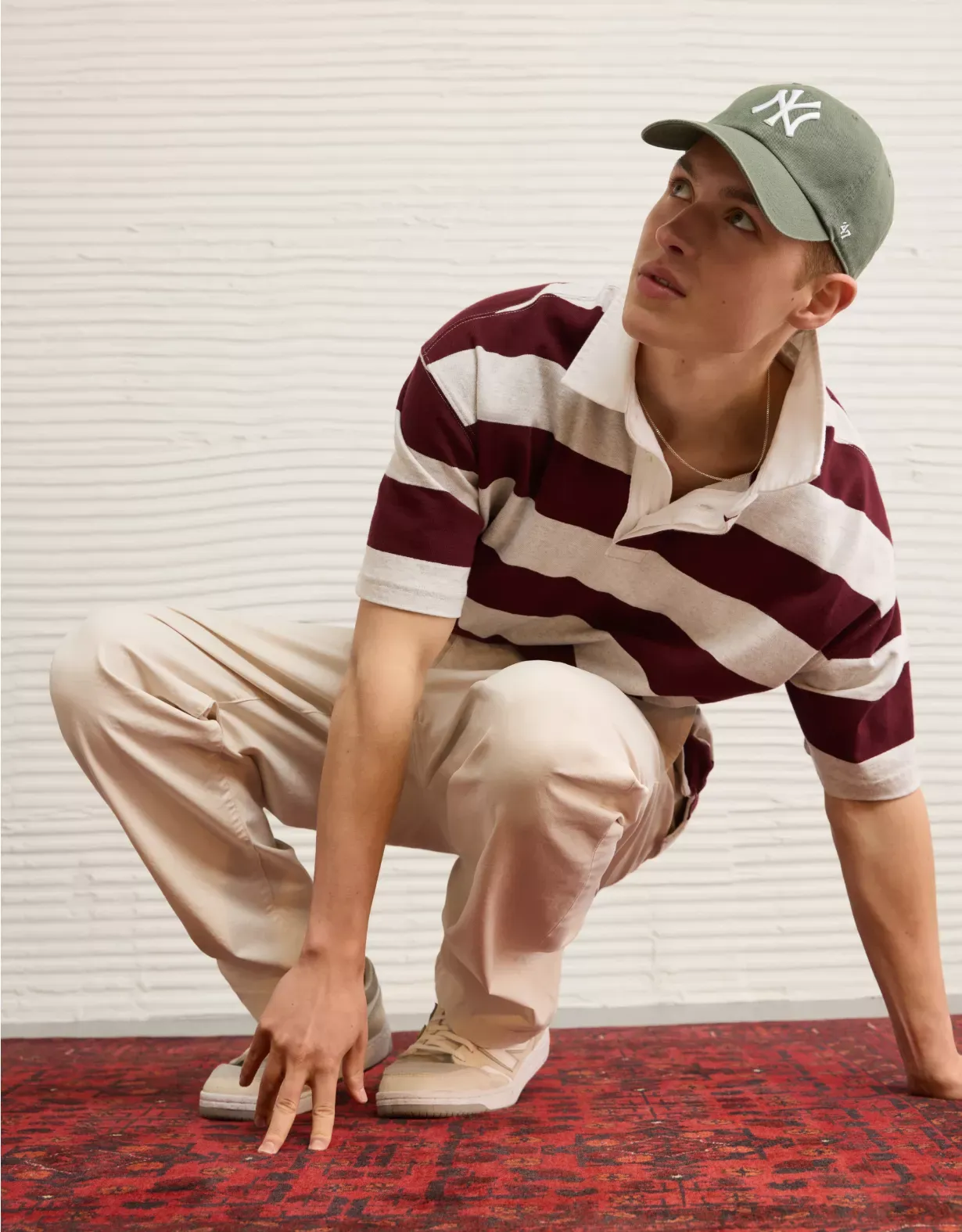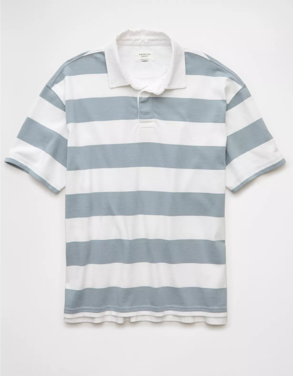 A sporty closet staple, made from the soft cotton jersey you know & love.Soft cotton jerseyCollared neck with polo button placketHorizontal stripesThis is Real Good: Made with the planet in mind & a promise to continue to do better.Materials & Care
