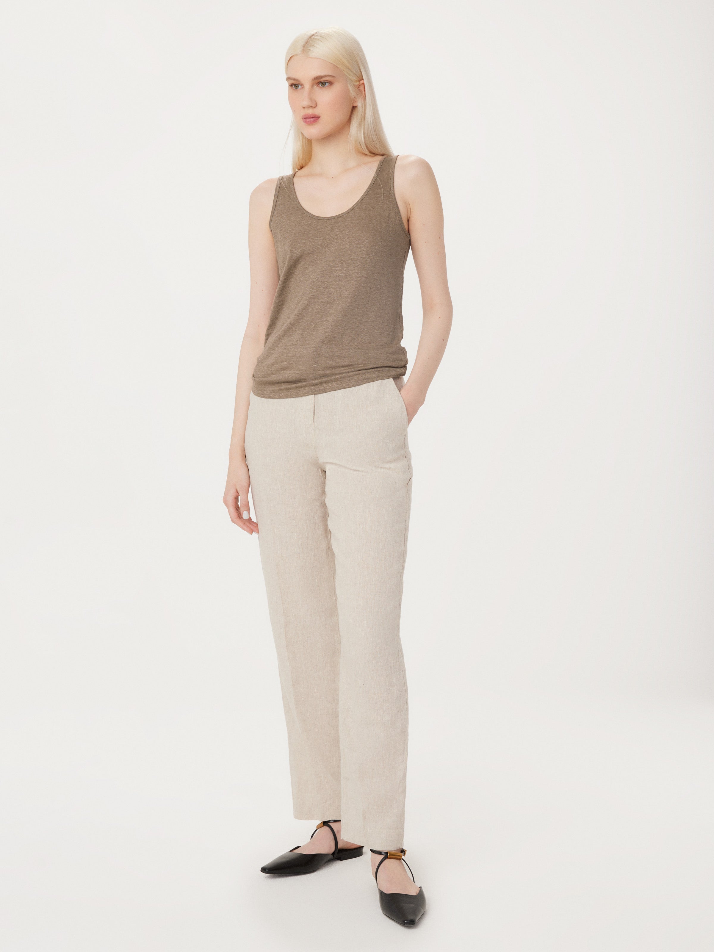 A summer must-have. This tank top is made from linen, one of the best fabrics for the hotter months. Features a U-neckline at the front and back. Relaxed fit. Sleeveless.