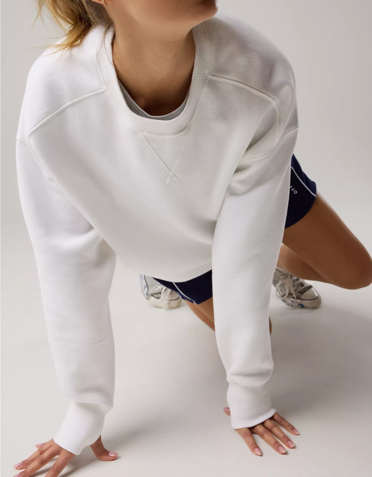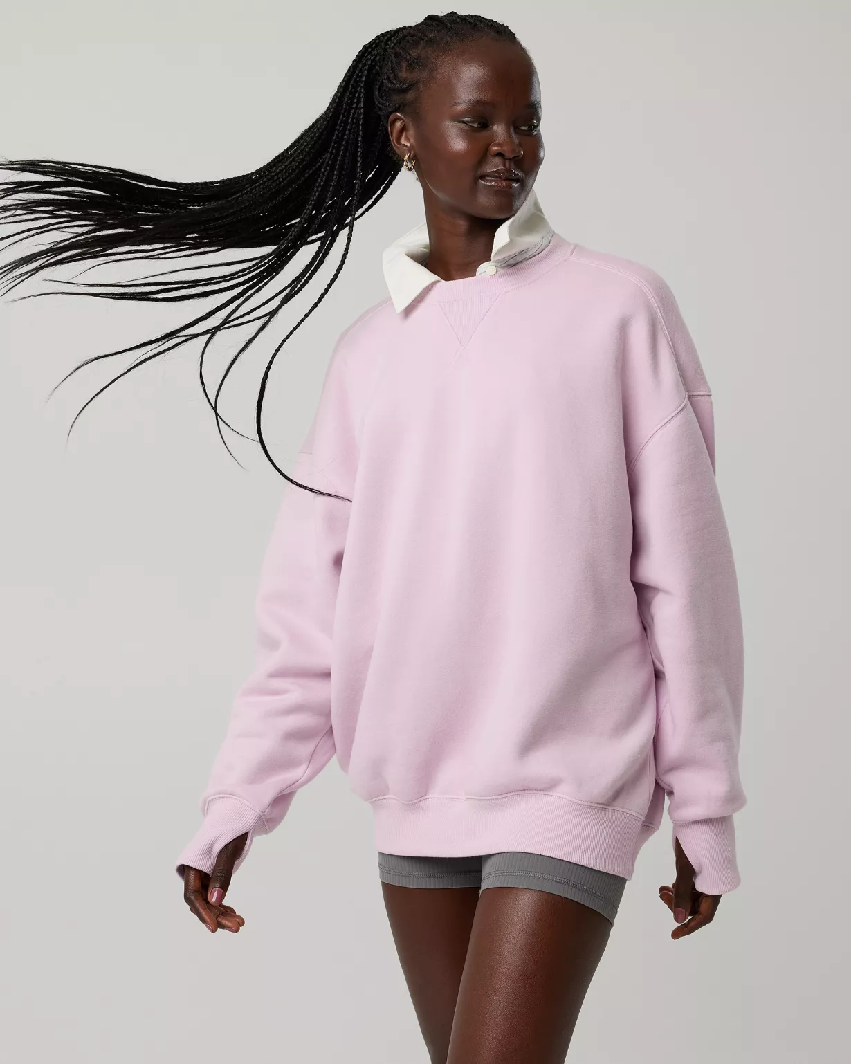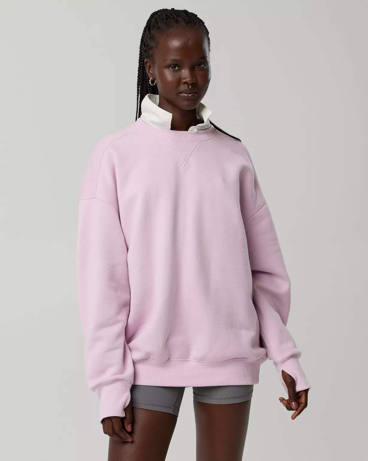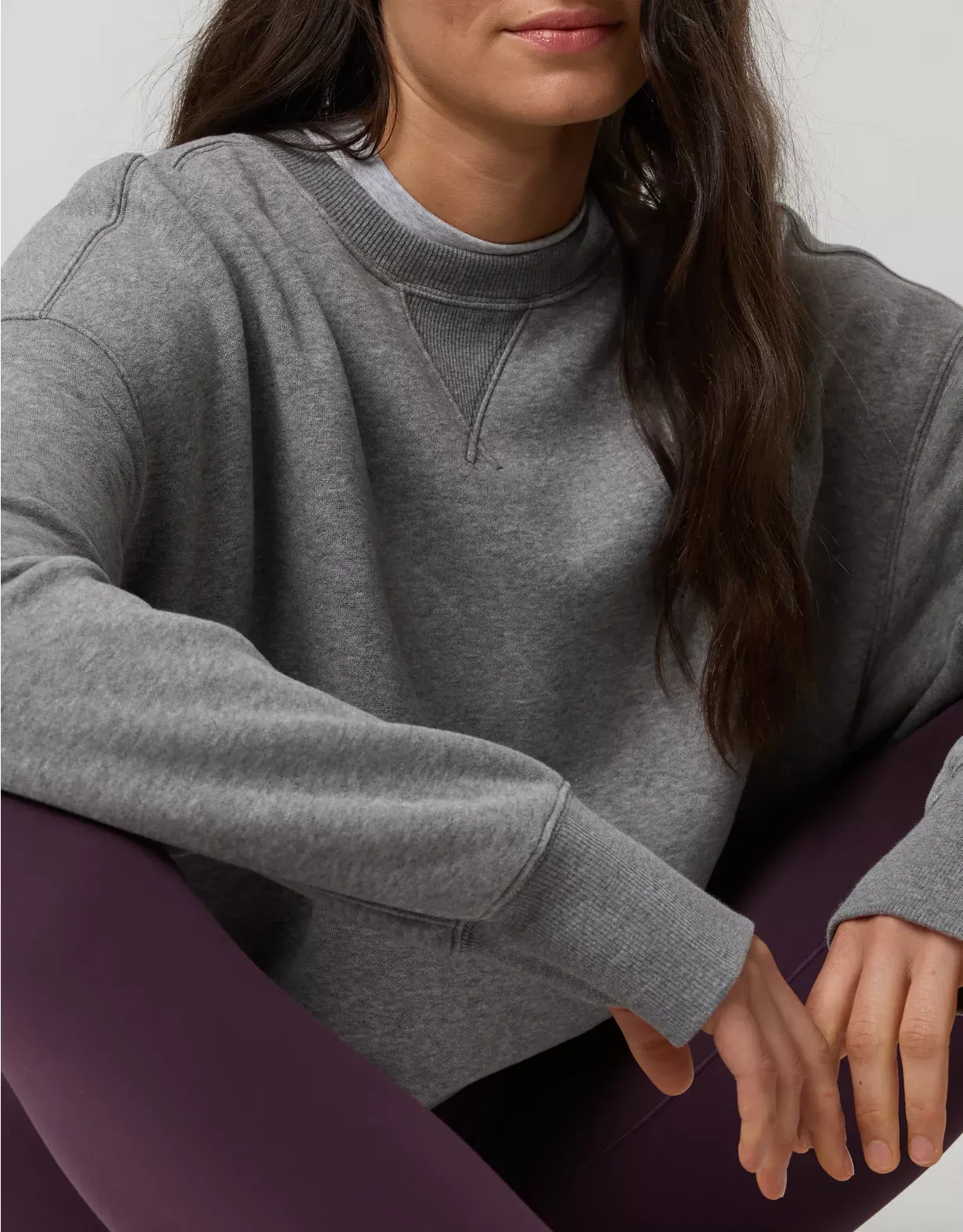 THE RUNDOWN: Cushy-as-a-cloud, weightless fleece that holds its shape while you’re on the go all day.THE LOOK: Holds its shape. Elevated basic. Thumbholes.THE FEEL: Brushed. Soooo soft on the inside. Weightless.THE MOVES: On the go.Accessibility deets: over-the-head access for easier on/off!Materials & Care