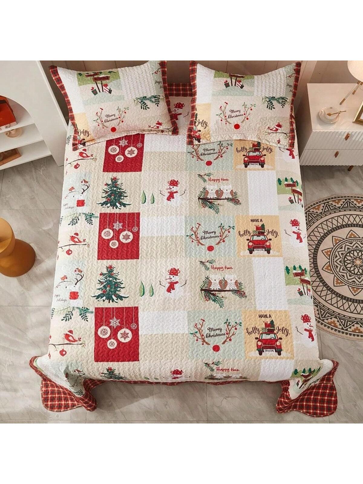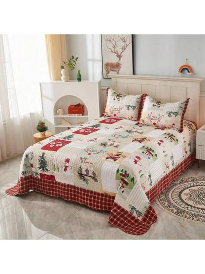3 Piece Queen Christmas Quilt Set , Quilt Bedspread Throw Blanket, Lightweight Bedspread Coverlet Comforter Set, Red