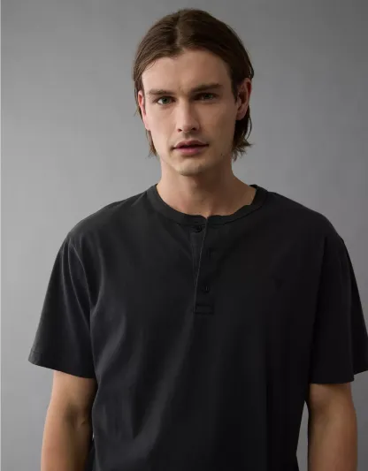 Classic, cool, and super comfortable. Style starts here.Soft jersey cottonHenley button placketThis is Real Good: Made with the planet in mind & a promise to continue to do better.Materials & Care