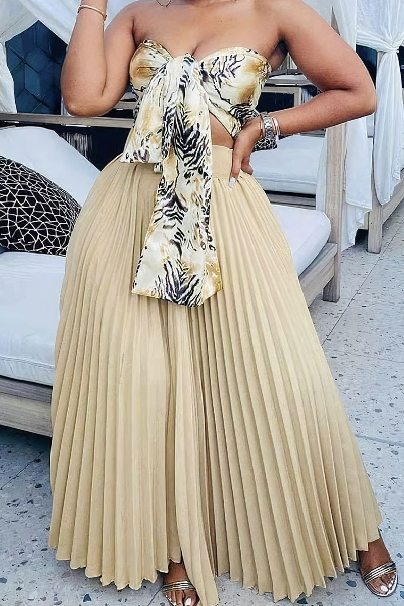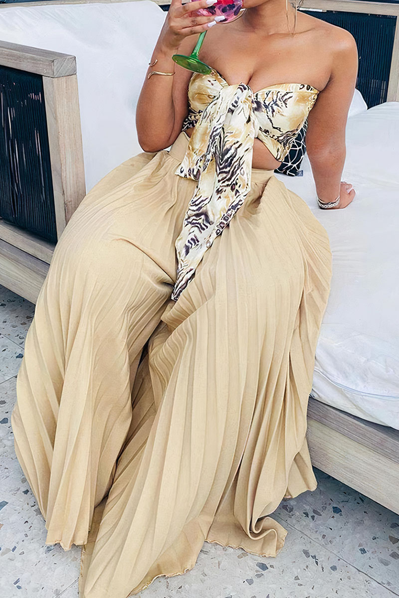 Animal Skin Print Tie Front Top & Pleated Pants Set