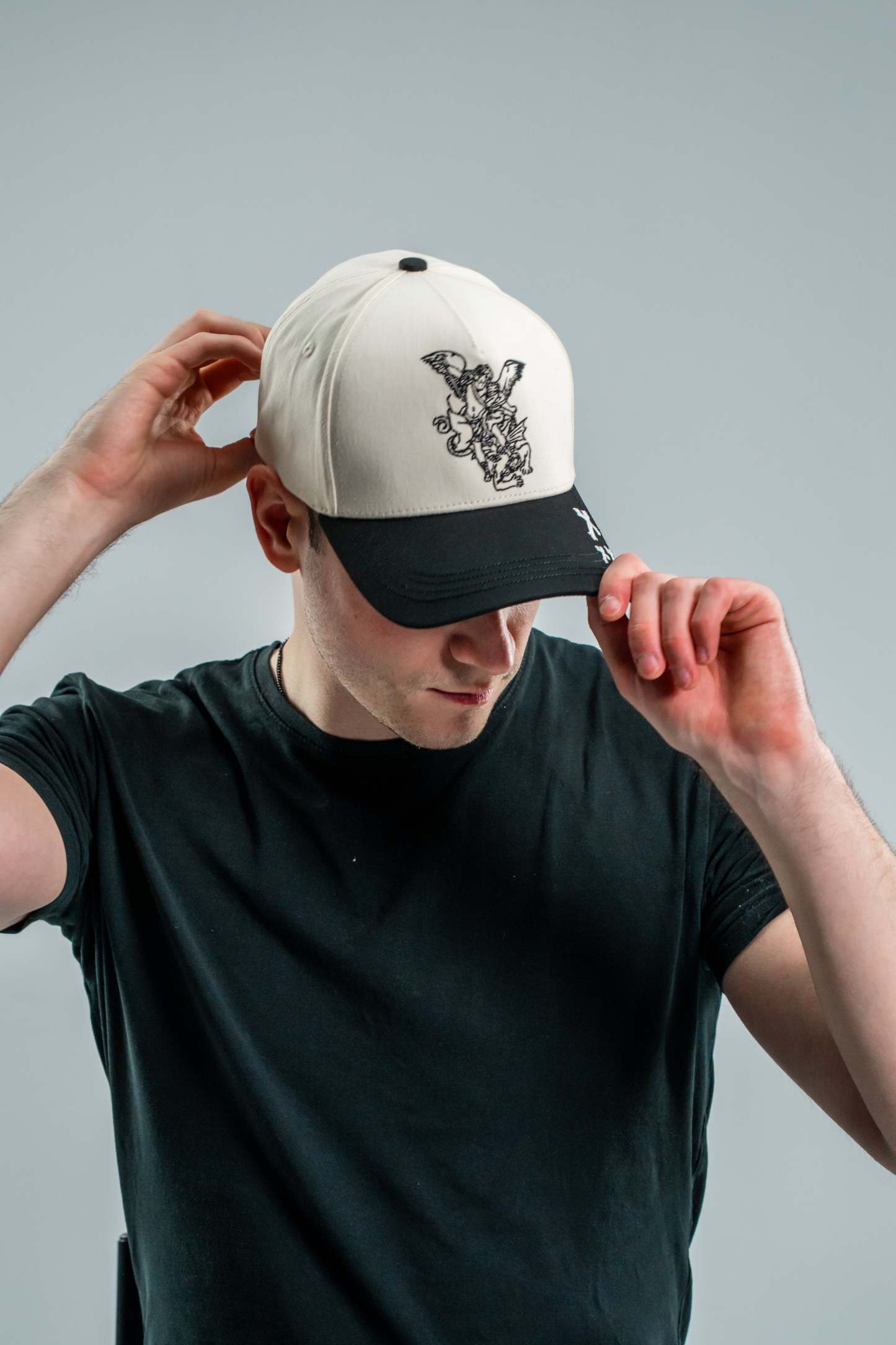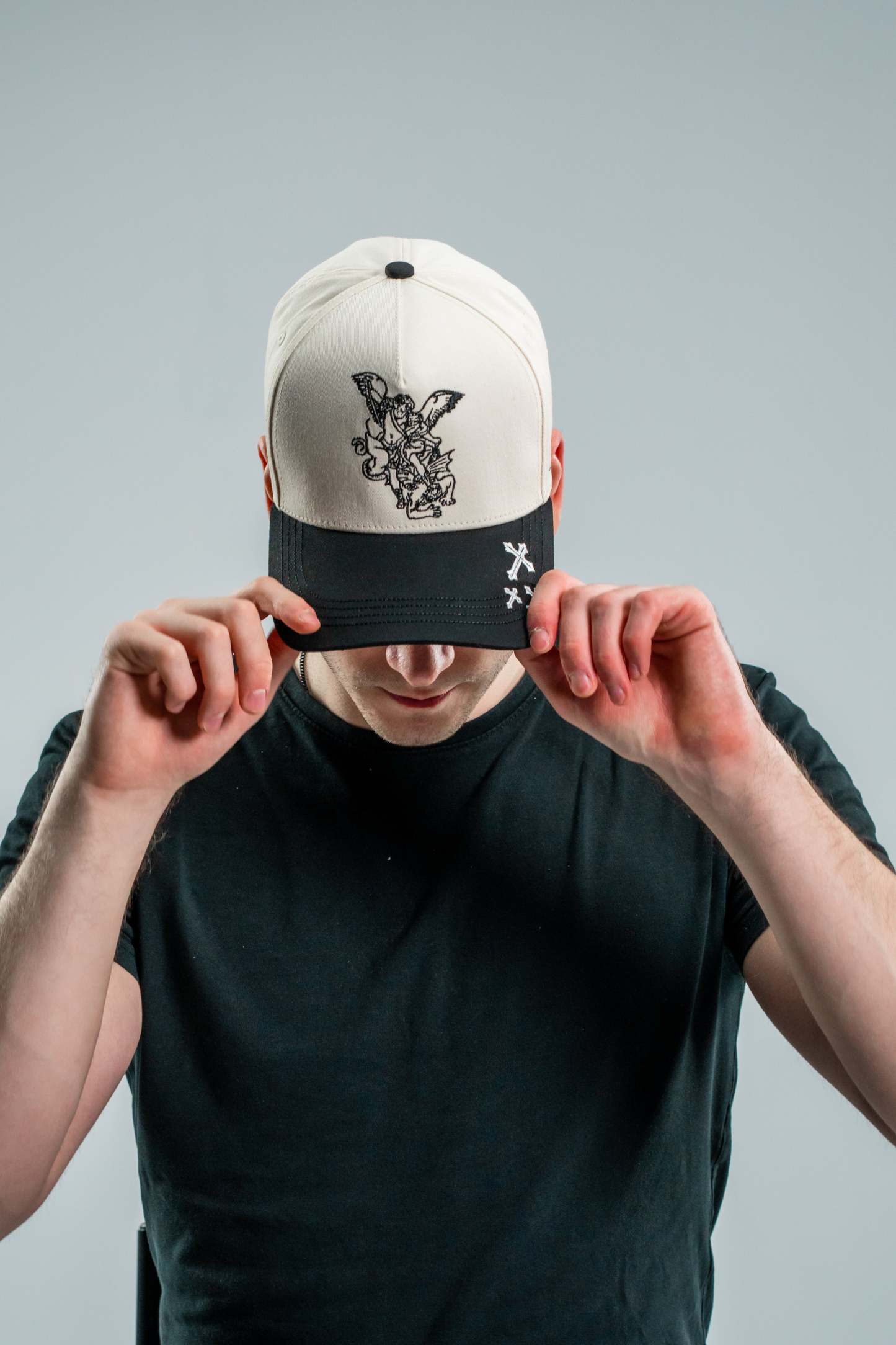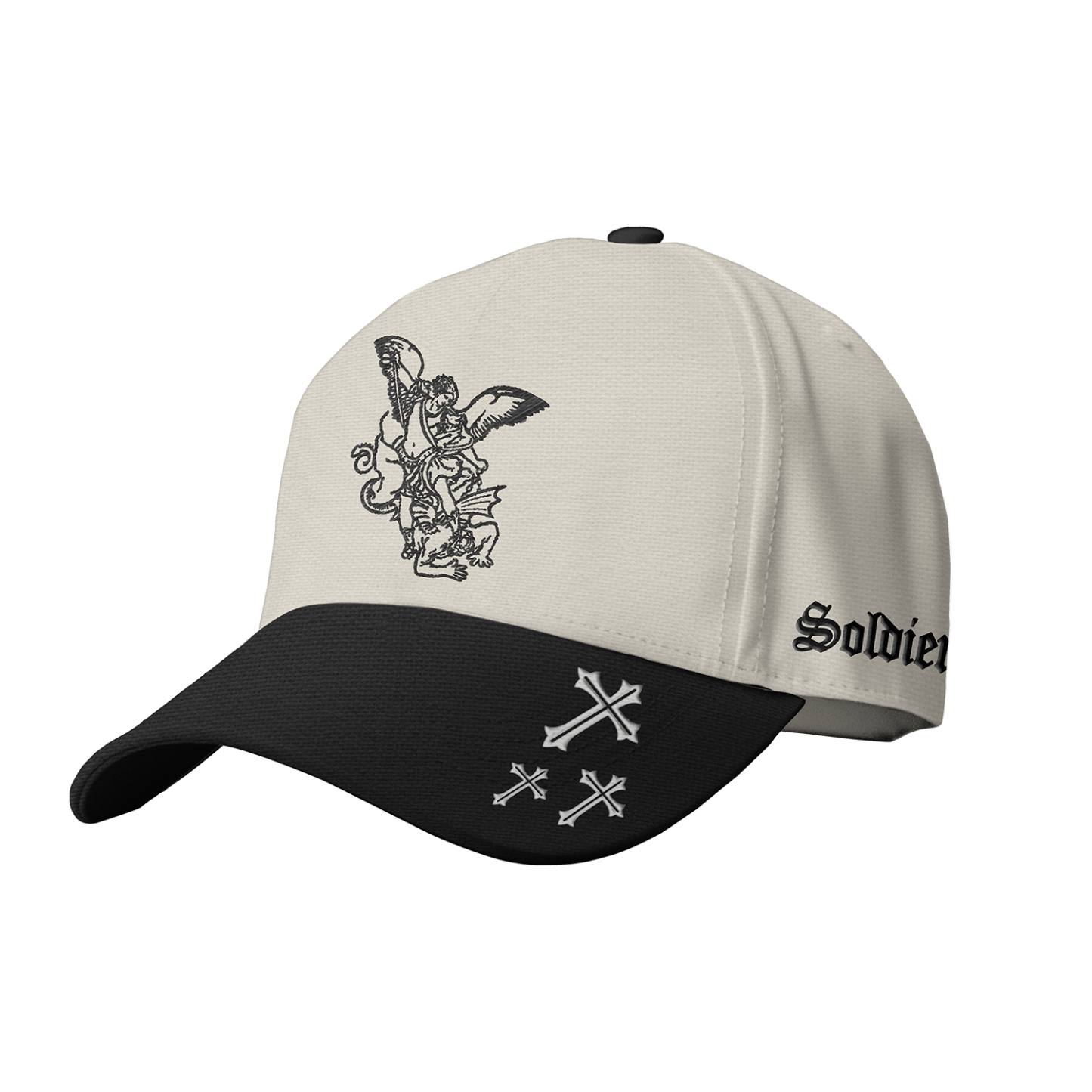 With an embroidered Archangel Michael and 3 crosses on the side, it seamlessly combines functionality with a subtle expression of faith. With an additional embroidery "Soldier of God" on the side of the cap.