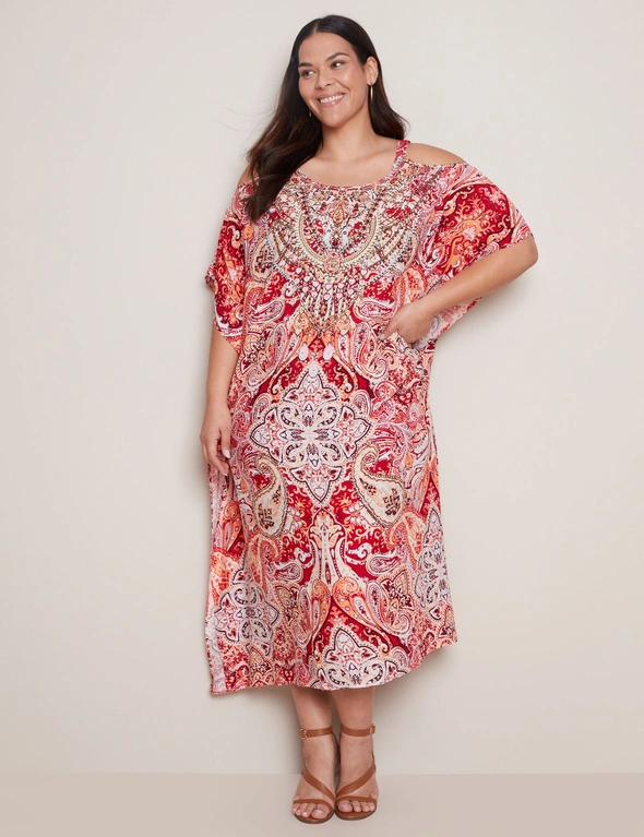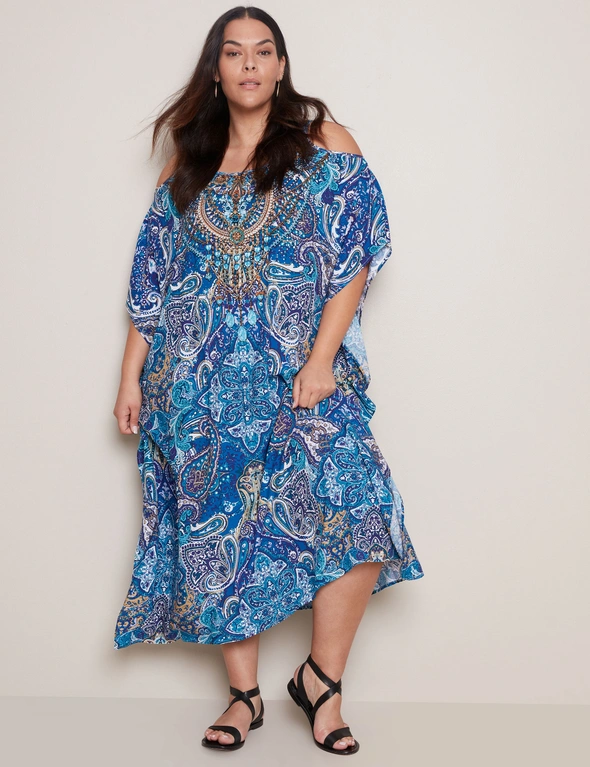 Autograph Cold Shoulder Printed Maxi Kaftan Dress