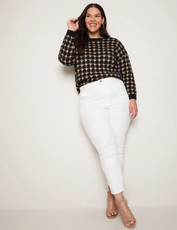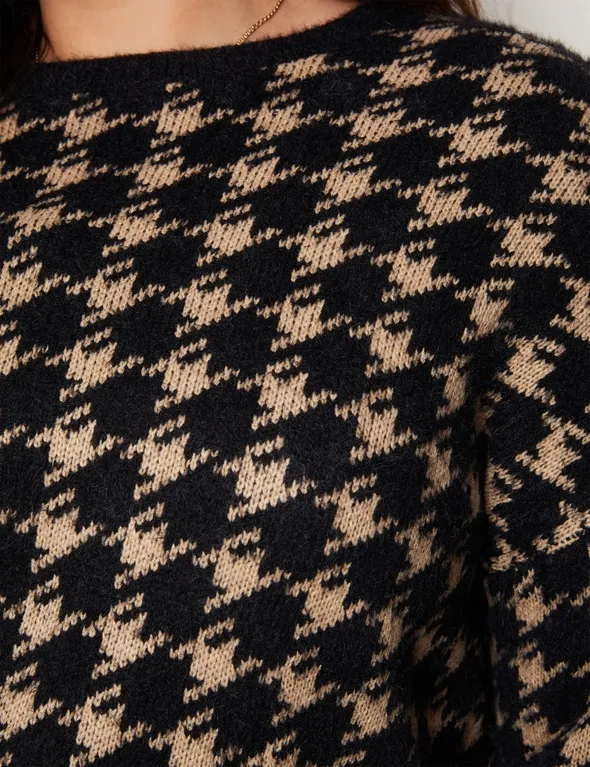 Introducing the Autograph Long Sleeve Houndstooth Knit Jumper, a classic yet stylish addition to your wardrobe. Crafted with meticulous attention to detail, this jumper features a timeless houndstooth pattern that exudes sophistication. Made from high-quality knit fabric, it offers both comfort and durability, ensuring a cozy feel and long-lasting wear. The long sleeves provide warmth, while the versatile design makes it perfect for pairing with jeans for a casual day out or dressing up with trousers for a more polished look. Embrace elegance and charm with the Autograph Long Sleeve Houndstooth Knit Jumper, a versatile staple for any season.