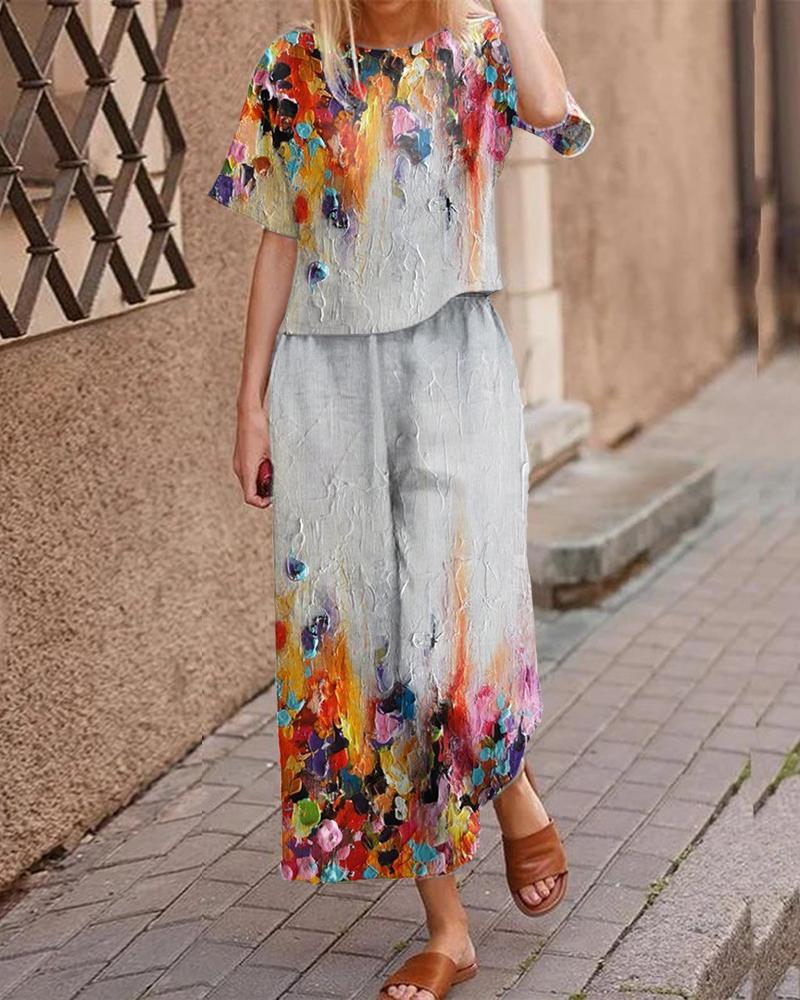 Casual Short Sleeve Floral Print Suit
