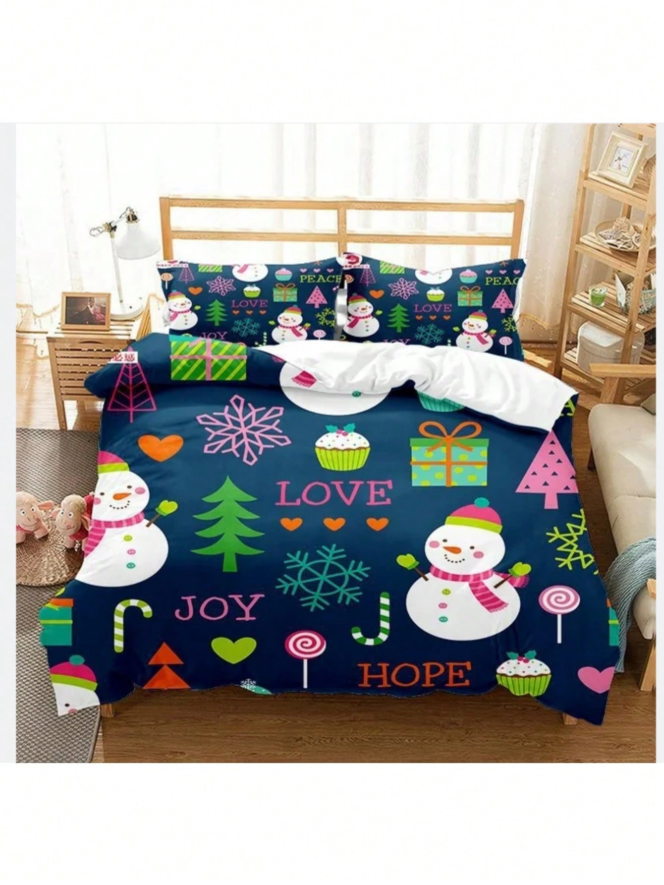 Christmas Bed Sets Rustic Christmas Santa Tree Snowman Pattern Printed Bedding Solid Quilted Bedspread Coverlet with 2 Pillow Shams for All Seasons, Soft Microfiber Quilt