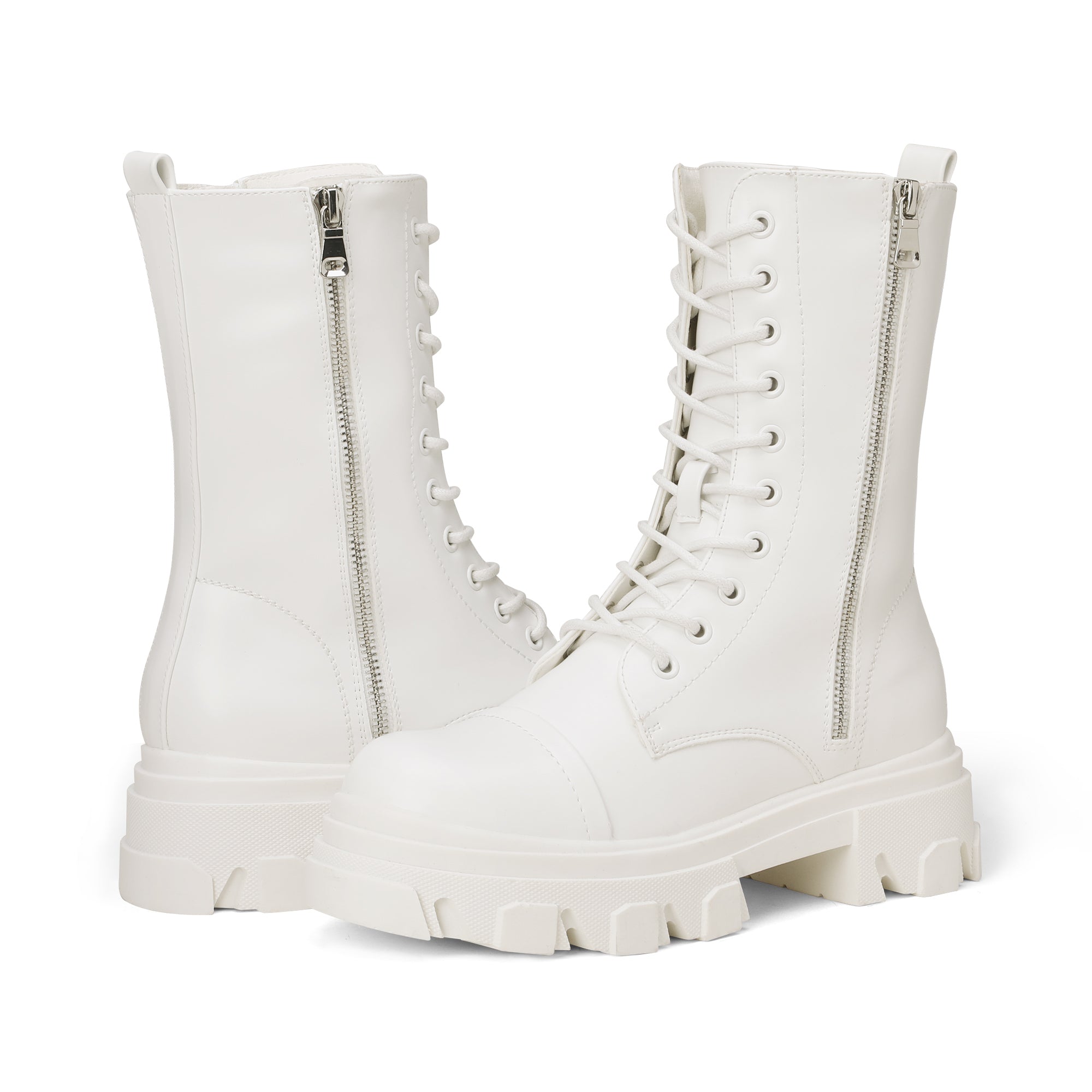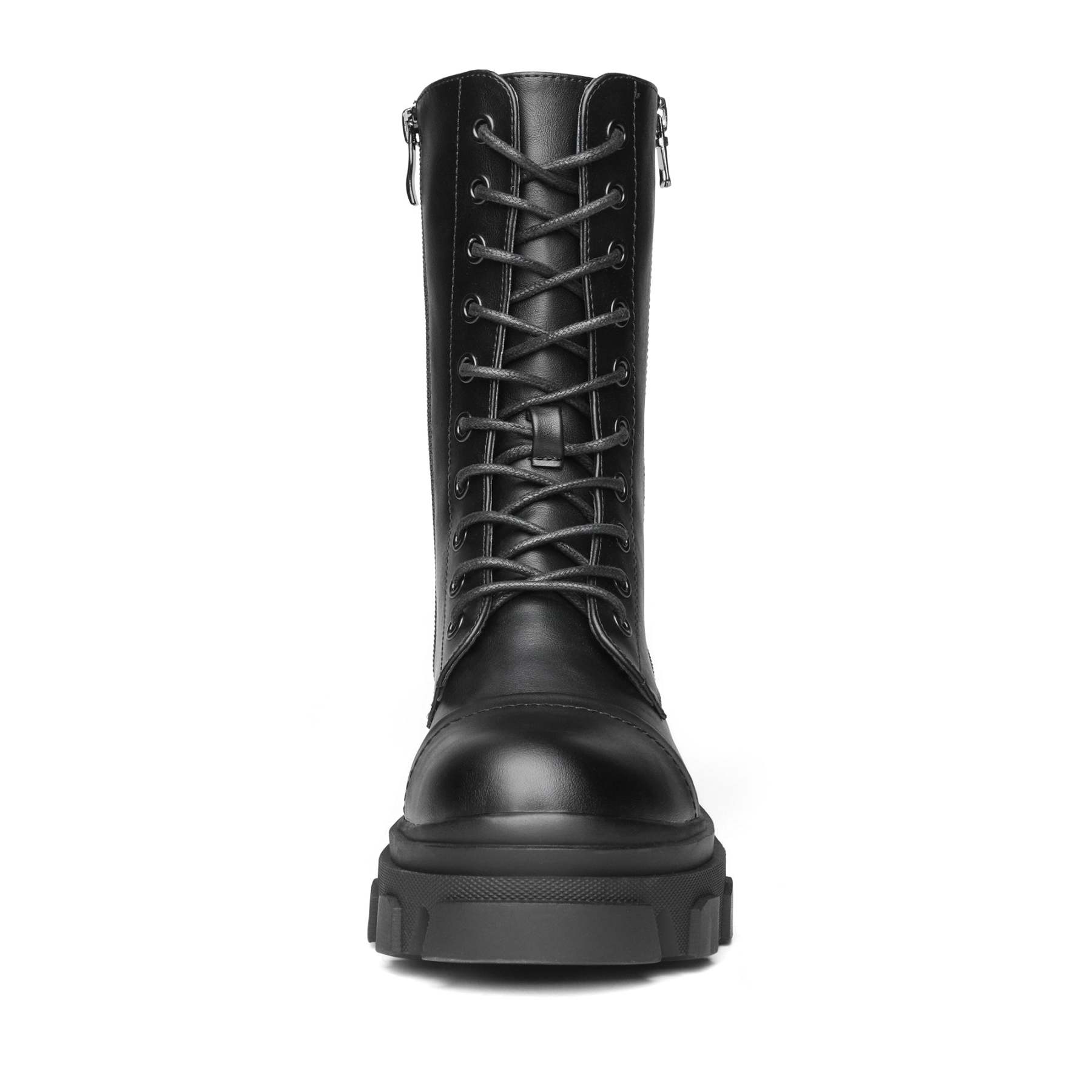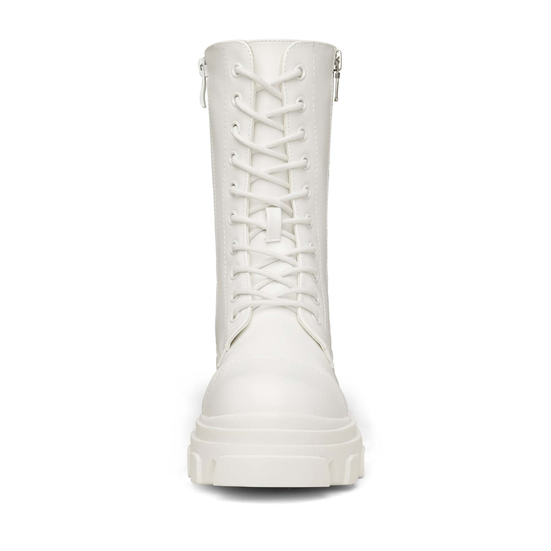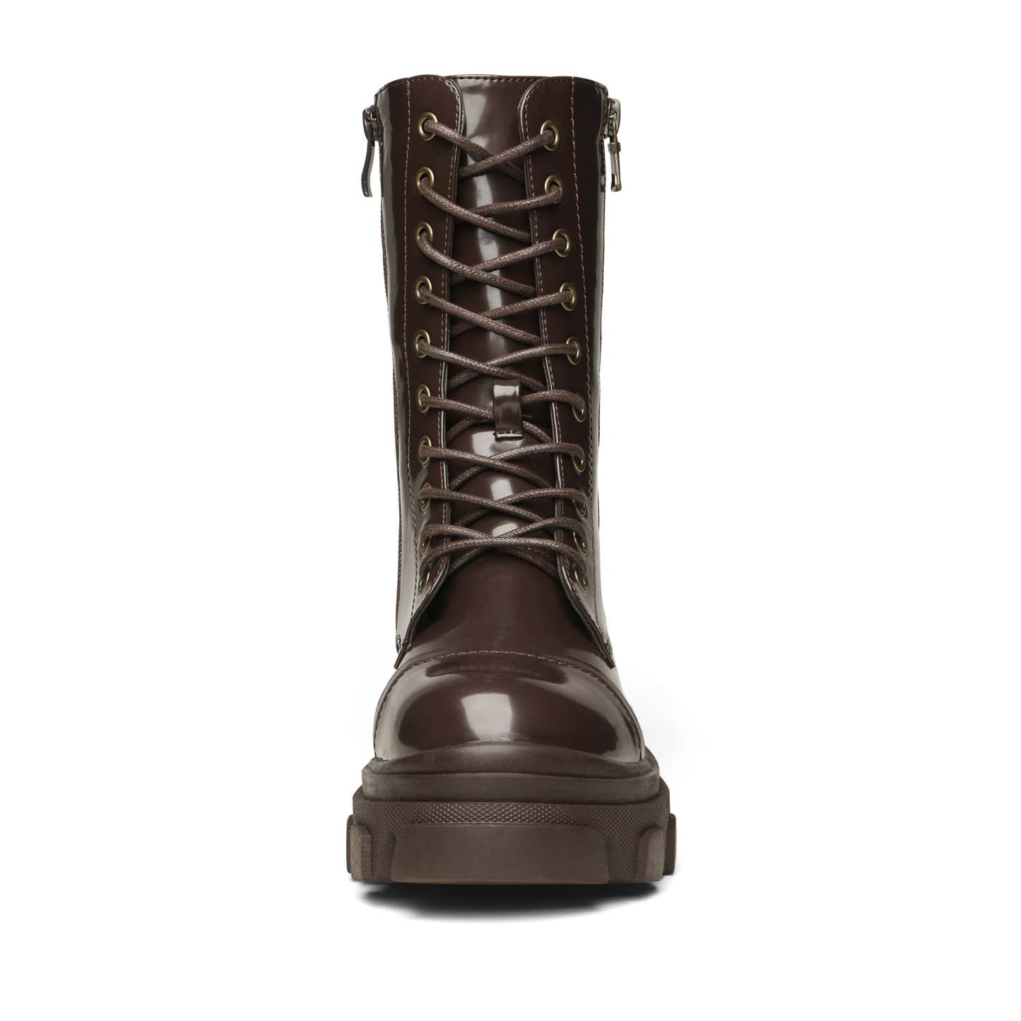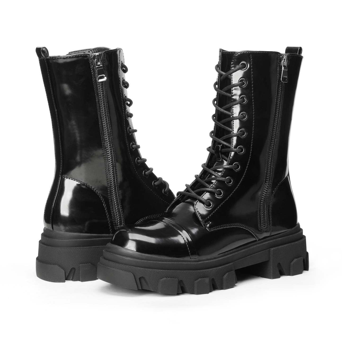 Boost your style with these Dream Pairs women's mid-calf combat boots. Built with a round toe and chunky platform for a stylish look. A zip closure makes putting on and taking off a simple affair, while a PU leather upper is easy to clean. Pair with anything – from dresses to skirts, to jeans.