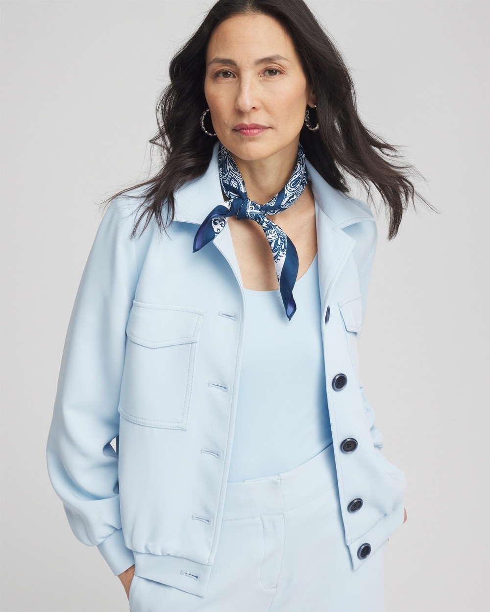 Designed inspired by the most-loved utility jacket, this new Georgette Crepe Shacket can be work as a jacket or a shirt as part of your spring 2025 outerwear.