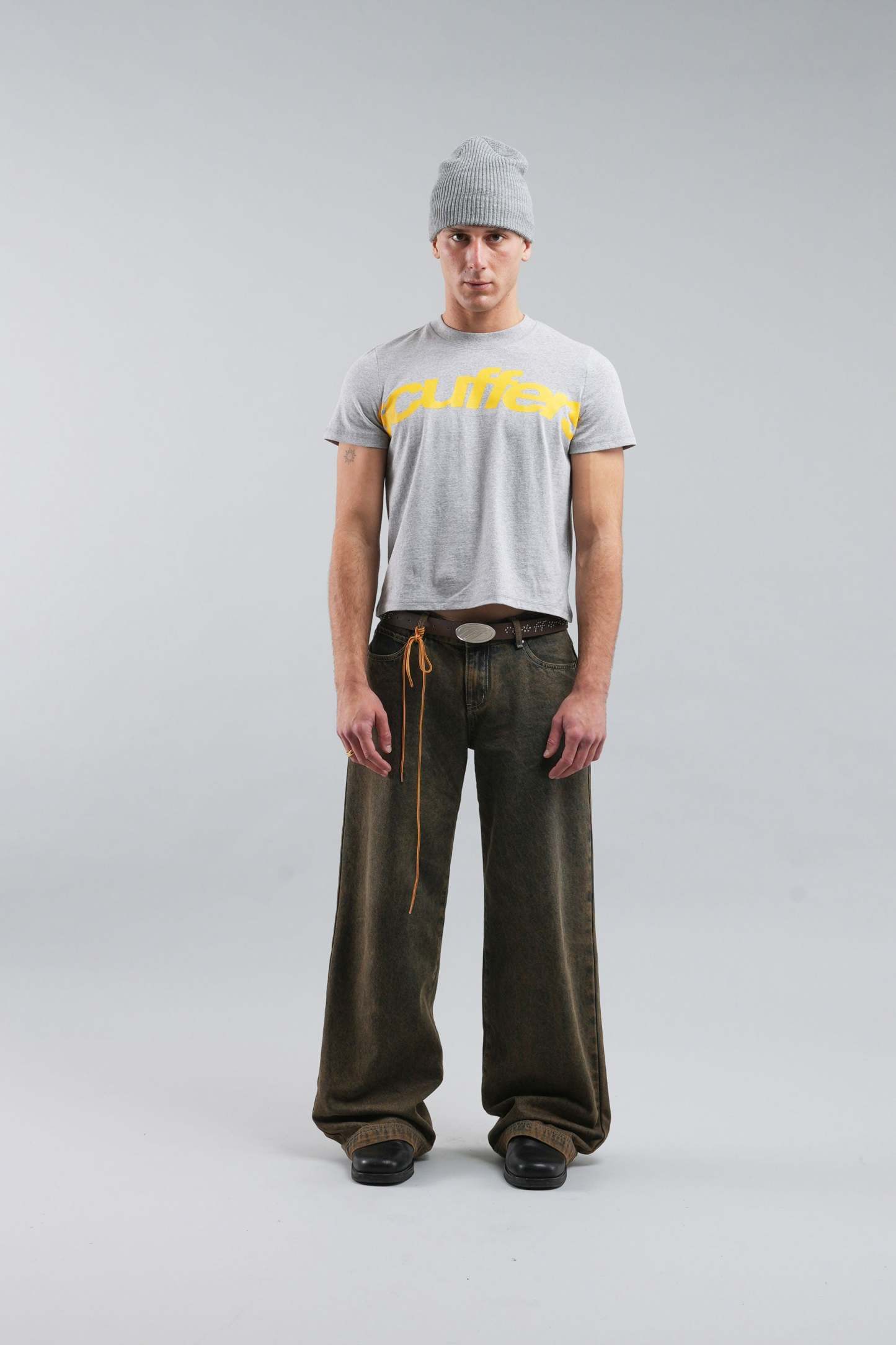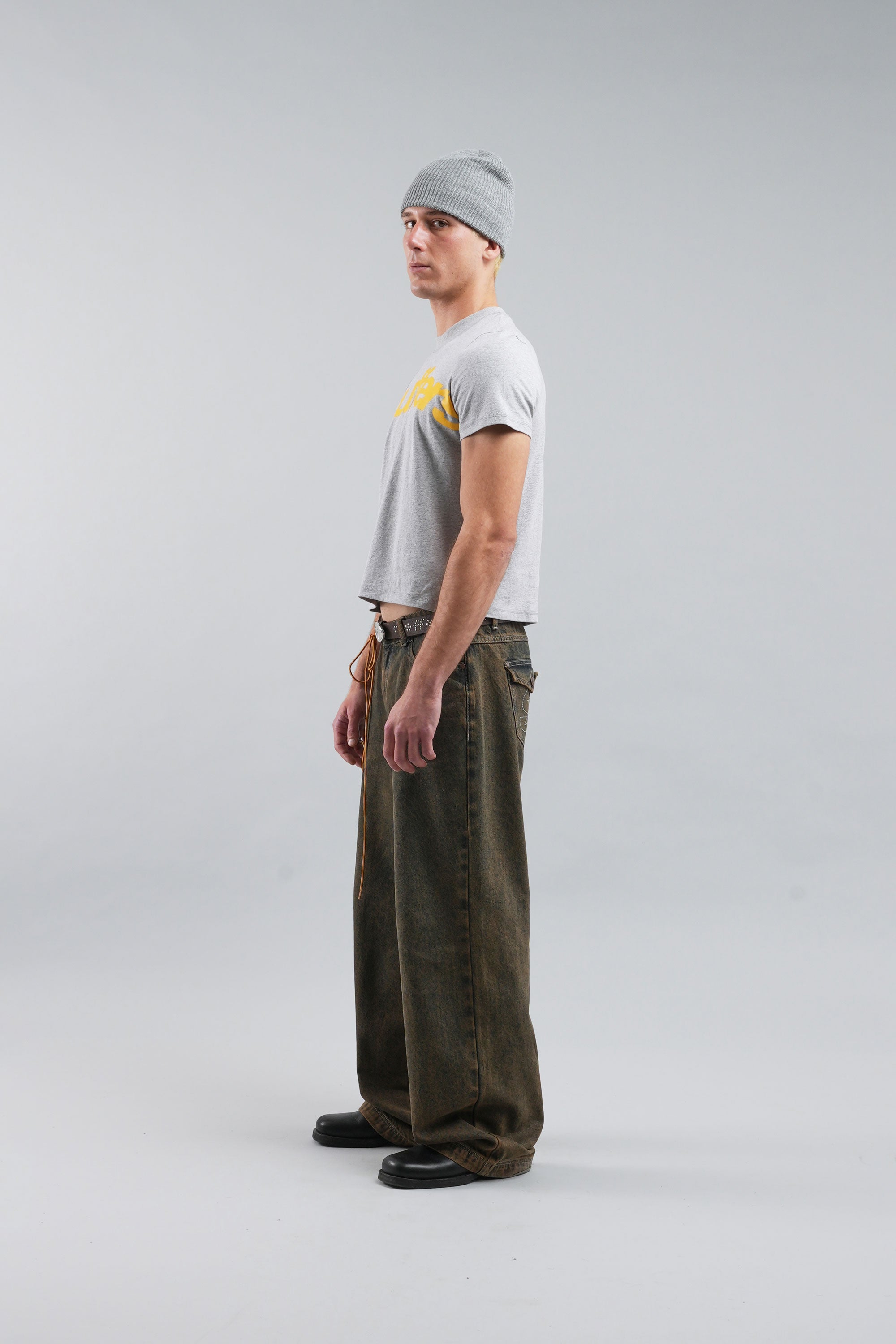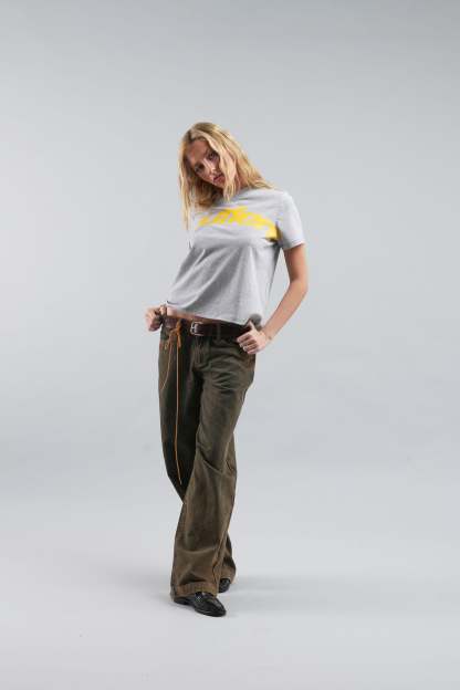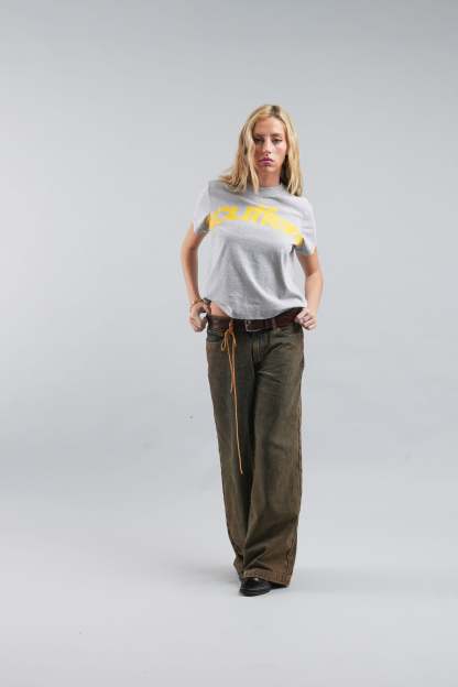 Melange Grey Graphic Tee made from soft, breathable cotton for everyday comfort. Features a bold yellow logo print across the front and a subtle branded detail on the back. Designed with a classic crew neckline, short sleeves, and a regular fit for a timeless, versatile look.