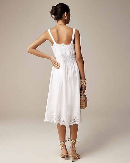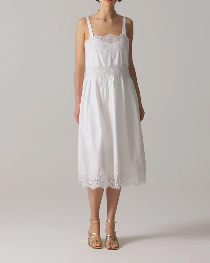 This floaty midi comes with intricate lace embroidery at the neckline, waist and hem for all the casual drama, plus a removable tie at the waist for a more cinched fit.