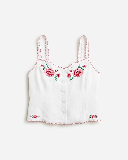 It comes with buttons all the way down the front, but it's the intricate, floral embroidery and scalloped trim that we love the most. Plus, it's crafted in lightweight, breathable linen that's perfect for summer.
