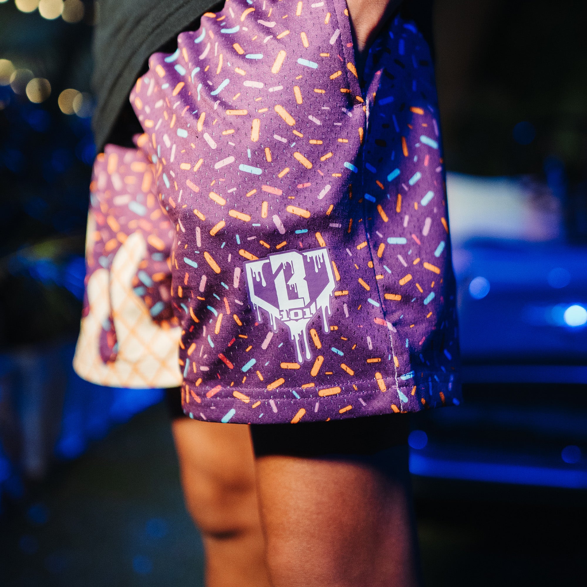 A new flavor of your favorite summer shorts are now available, the Ice Cream Shorts - Cosmic Cone Crunch from Baseball Lifestyle 101. With more flavor added in BL101's Ice Cream Collection – Mint, Strawberry, Cotton Candy , Cherry... the options are now limitless. These breathable, one-of-a-kind, detail-oriented shorts provide baseball fans with a range of mobility and versatility on and off the field.
