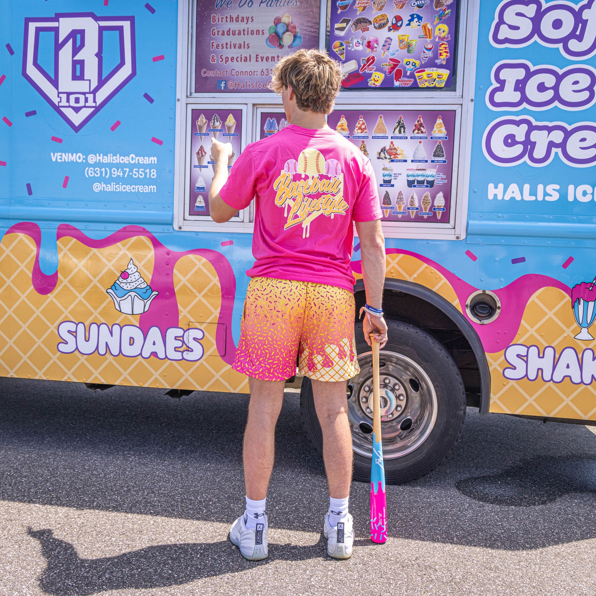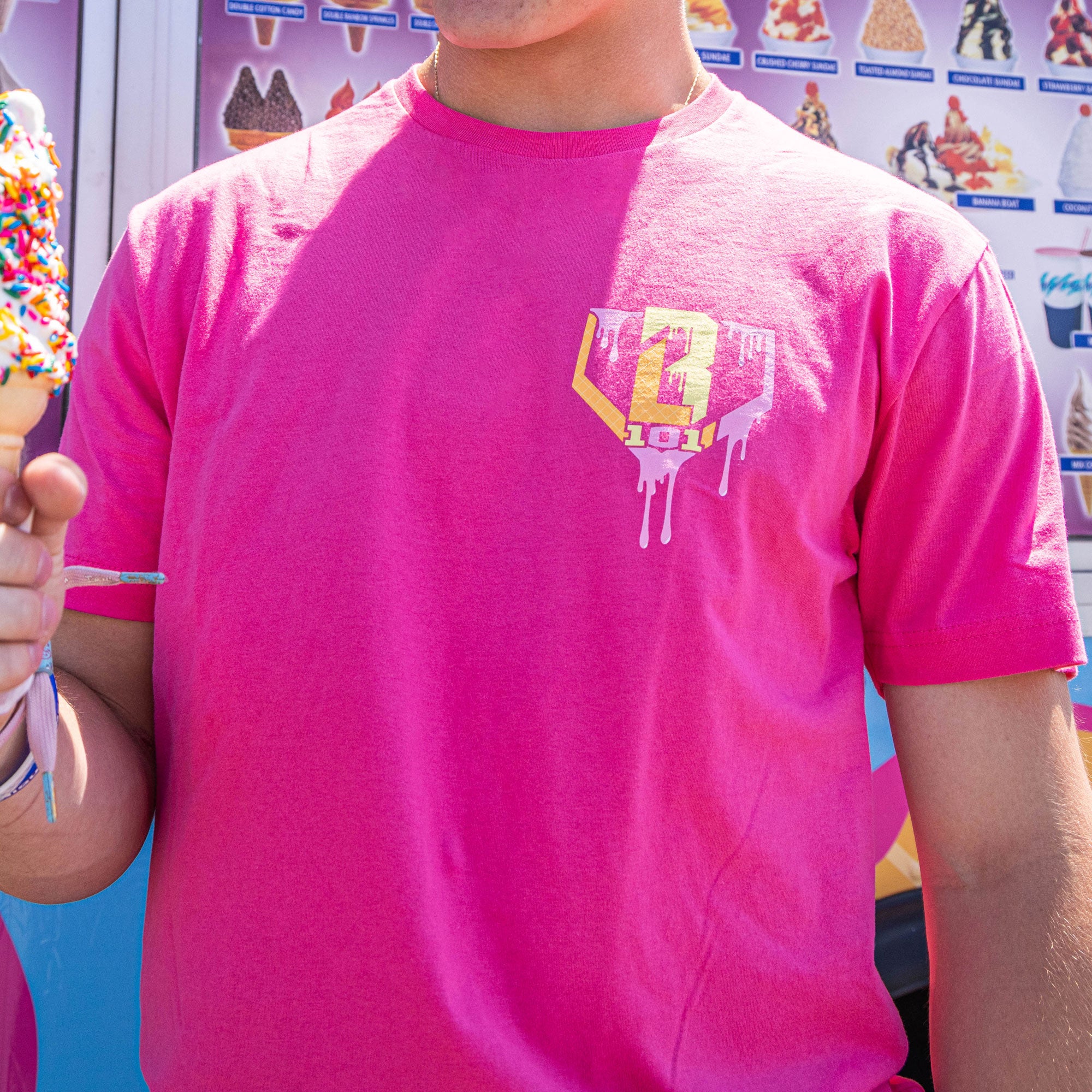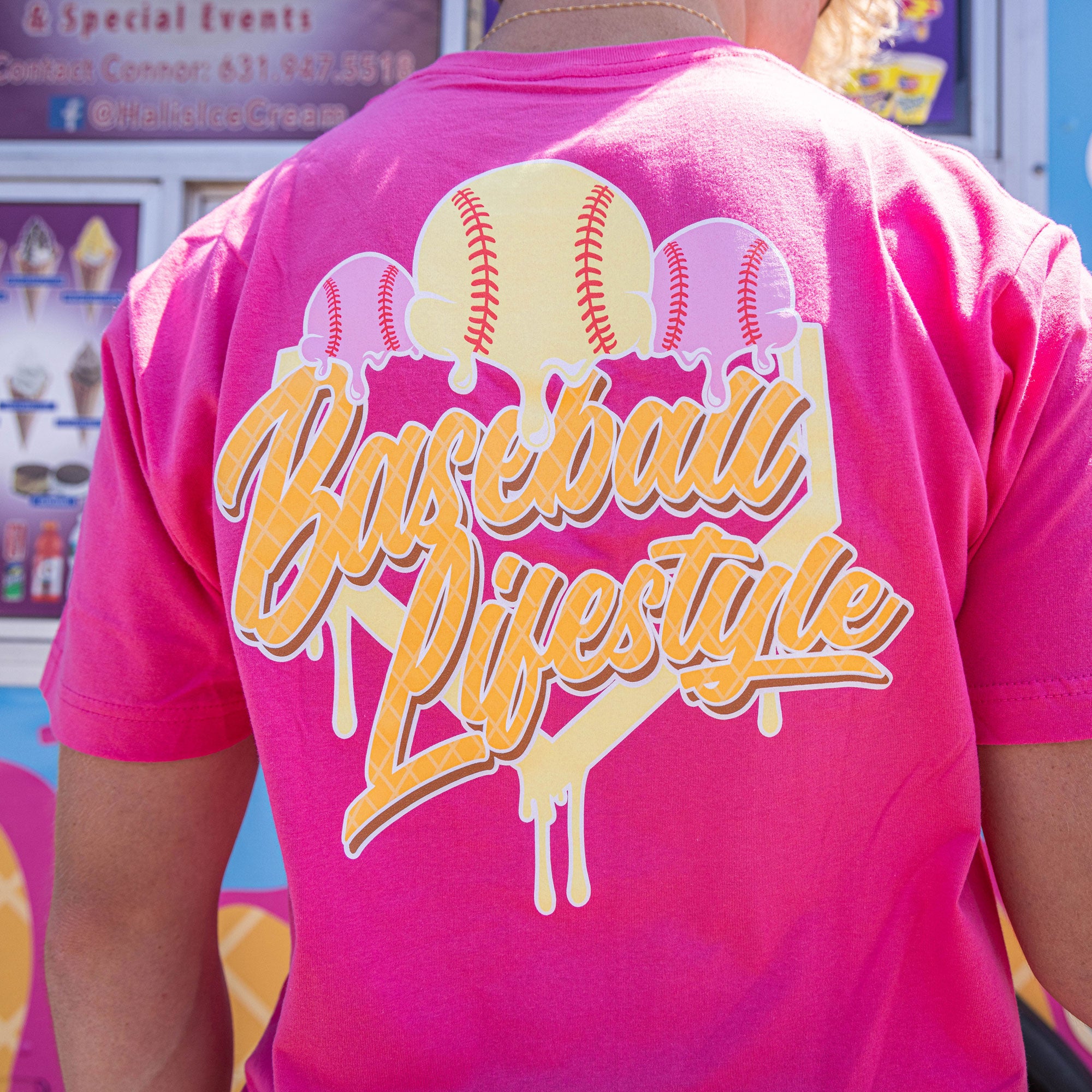 Introducing the Ice Cream Tee - Strawberry Banana by Baseball Lifestyle! This sweet and stylish shirt features a vibrant strawberry banana ice cream design that perfectly captures the essence of summer. Crafted from high-quality, breathable fabric, this tee is as comfortable as it is eye-catching. With "Baseball Lifestyle" emblazoned across the back, it’s the perfect blend of fun and sporty. Ideal for casual outings, game days, or just enjoying a sunny day, the Strawberry Banana Ice Cream Tee is a must-have for any baseball enthusiast with a love for cool treats. Indulge in style and show off your passion for baseball with a touch of strawberry banana sweetness!