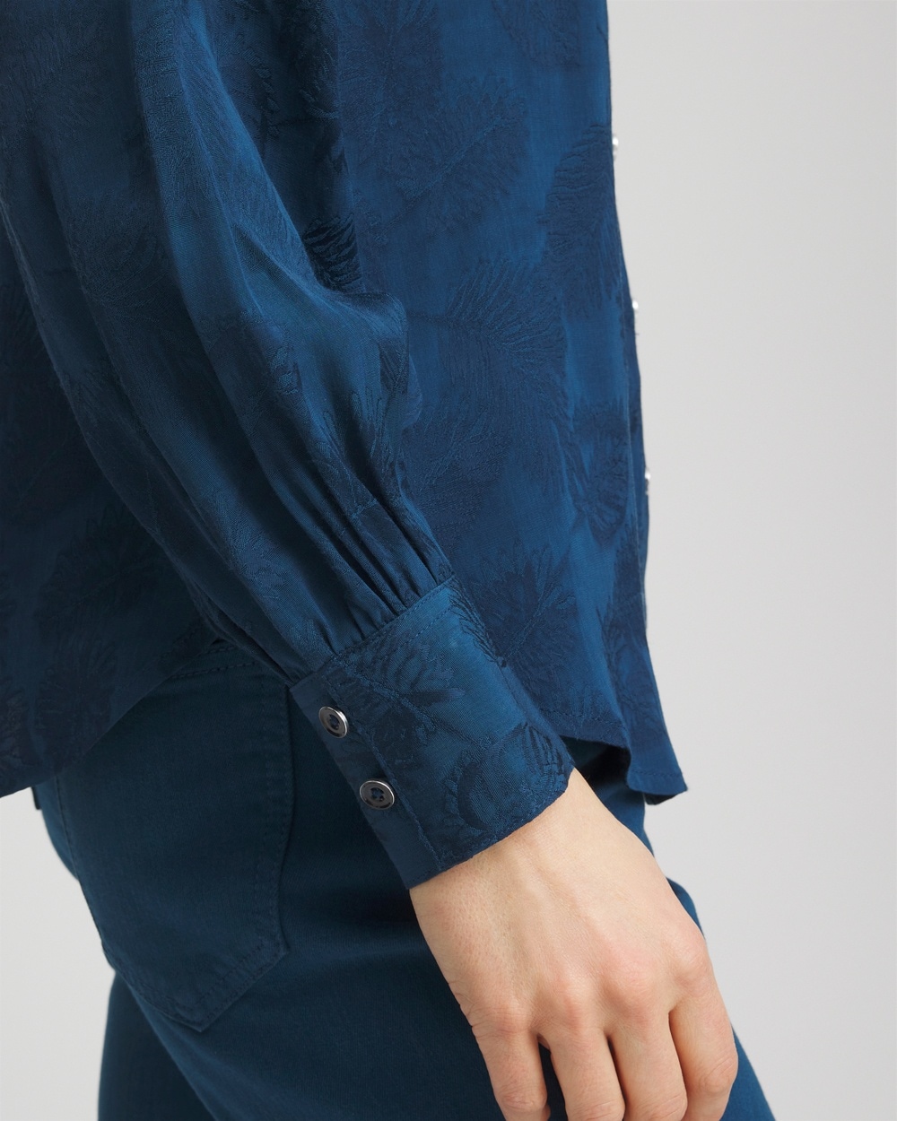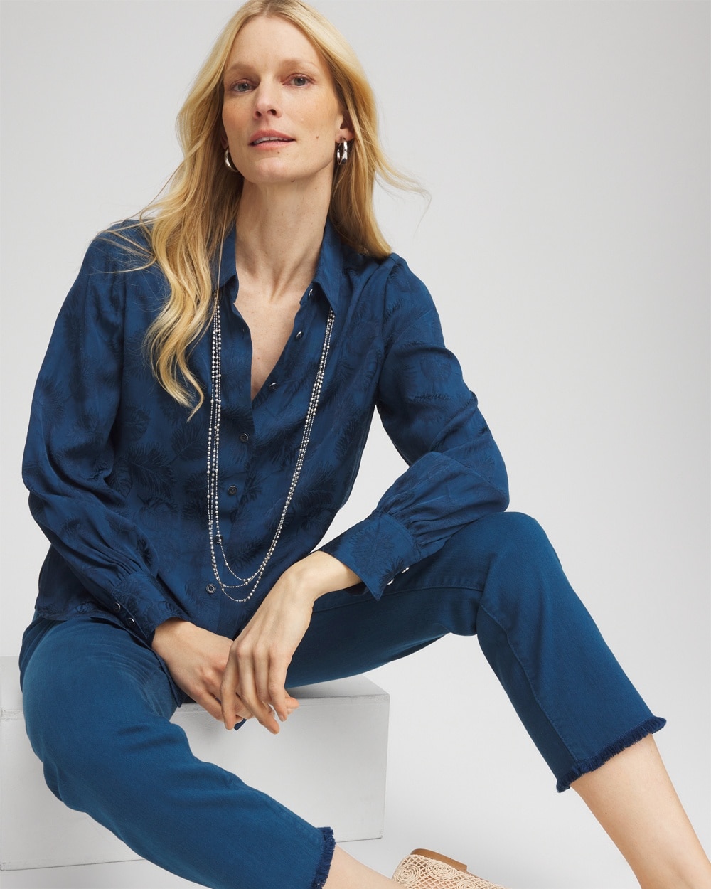 Add this new Jacquard Collared Shirt to your spring 2025 wardrobe. Showcasing a lovely, ready-to-wear style, playful print, and pleated cuffs.