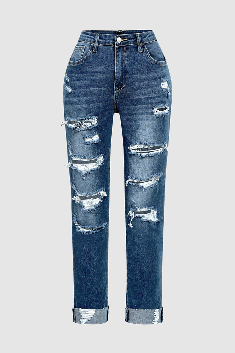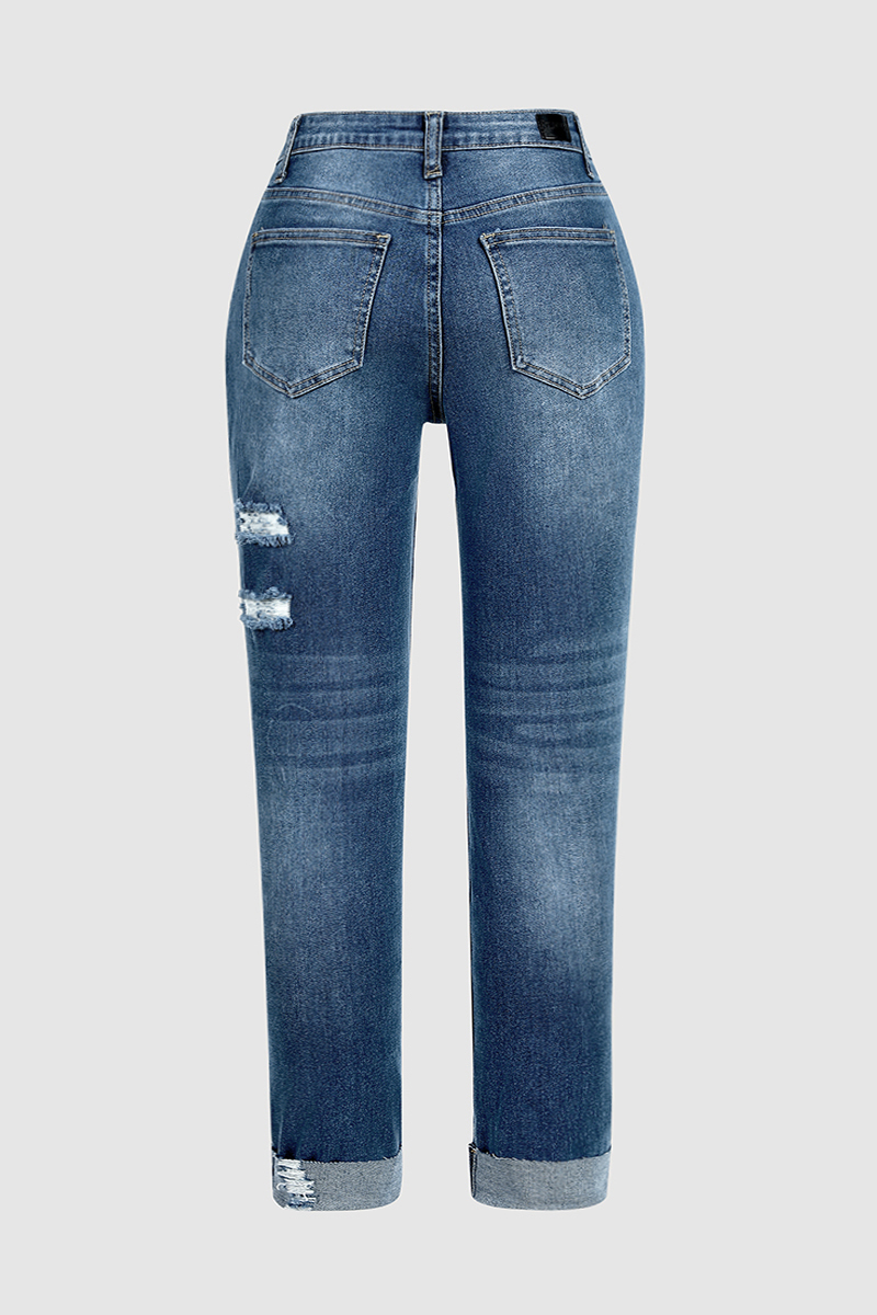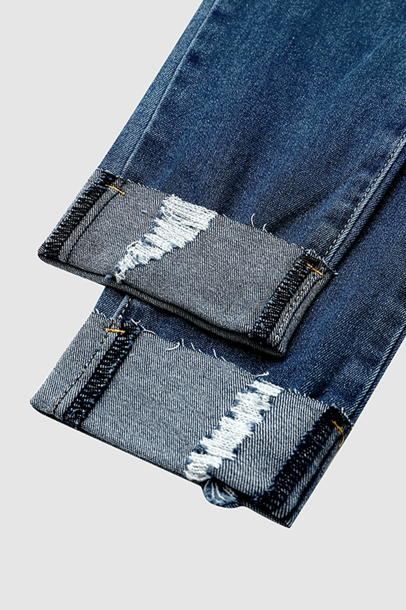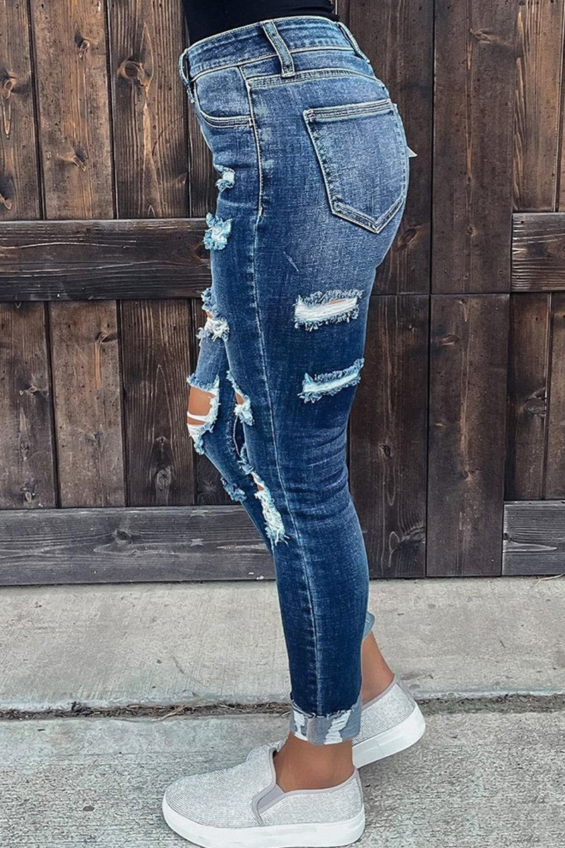 Ladder Ripped Rolled Hem Mid Waist Skinny Jeans