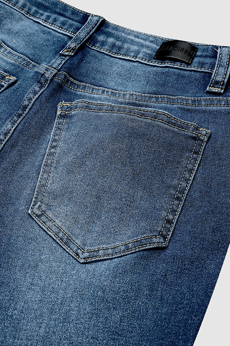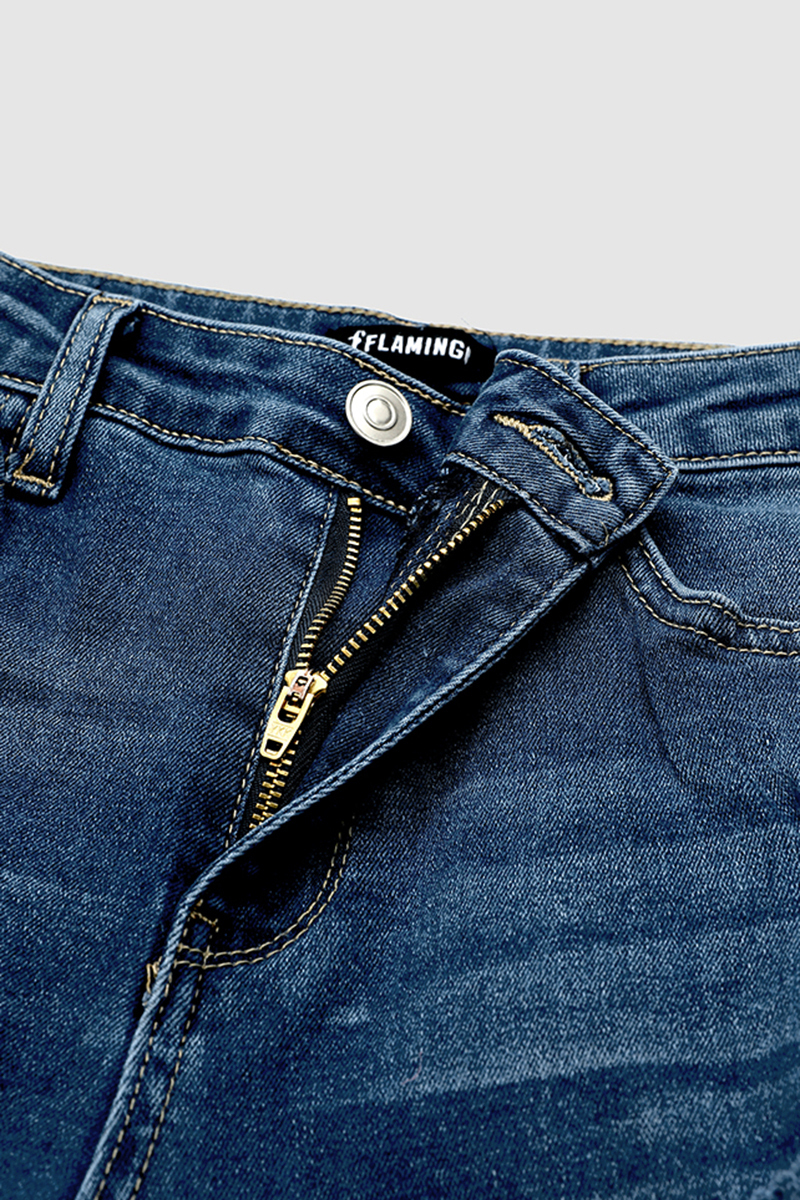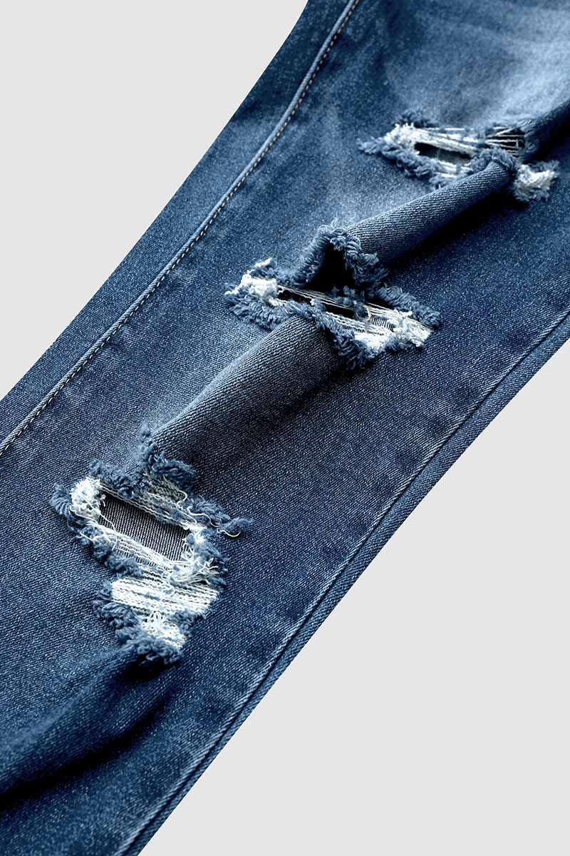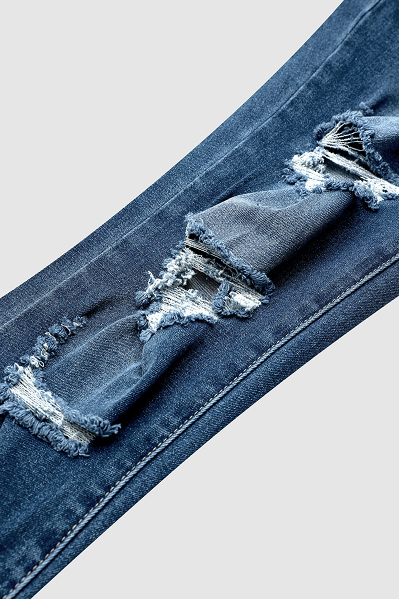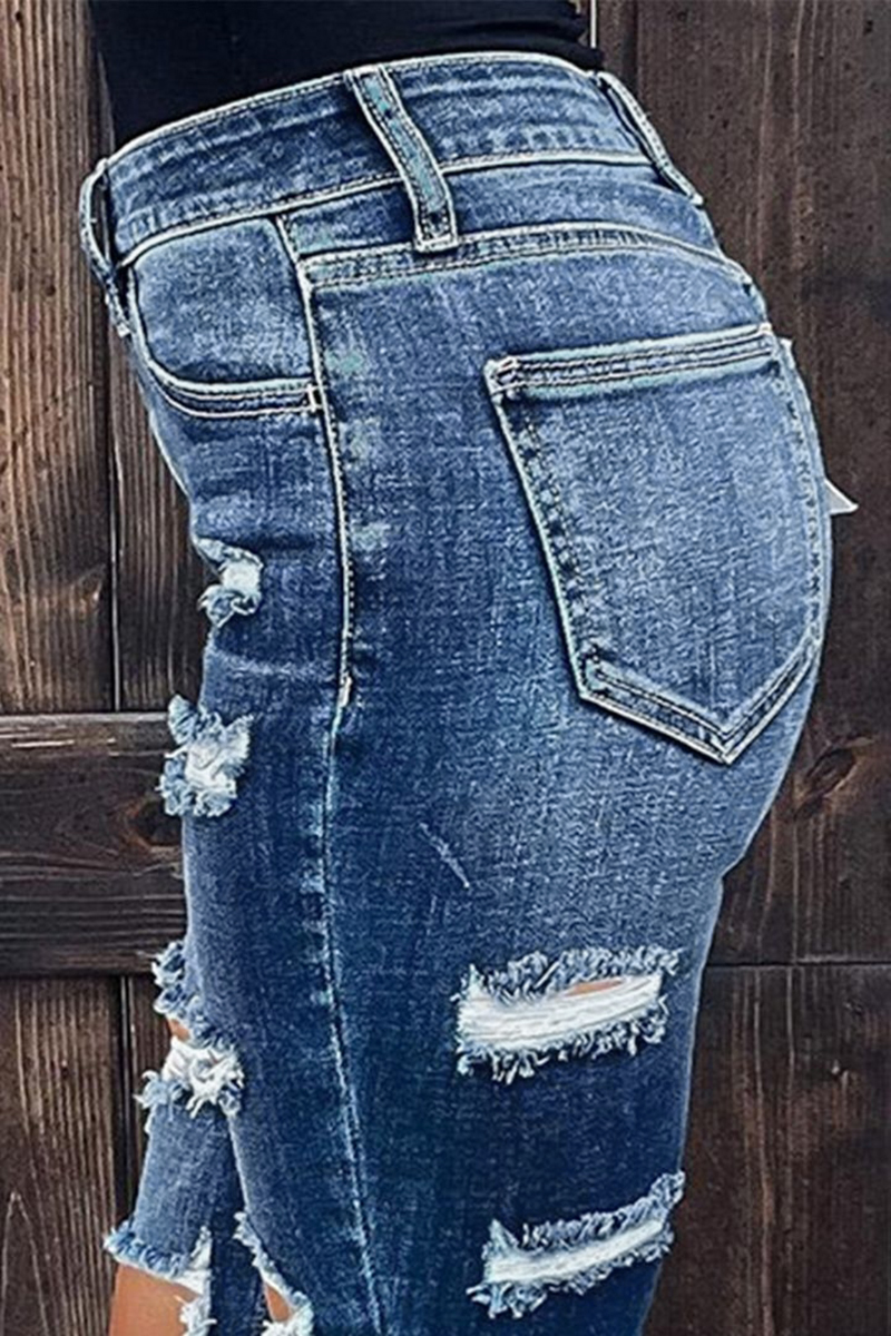 Ladder Ripped Rolled Hem Mid Waist Skinny Jeans