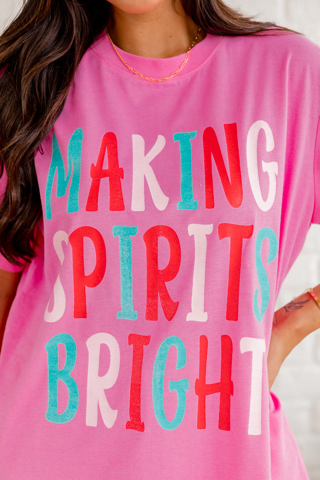 - Making Spirits Bright Pink Oversized Graphic Tee