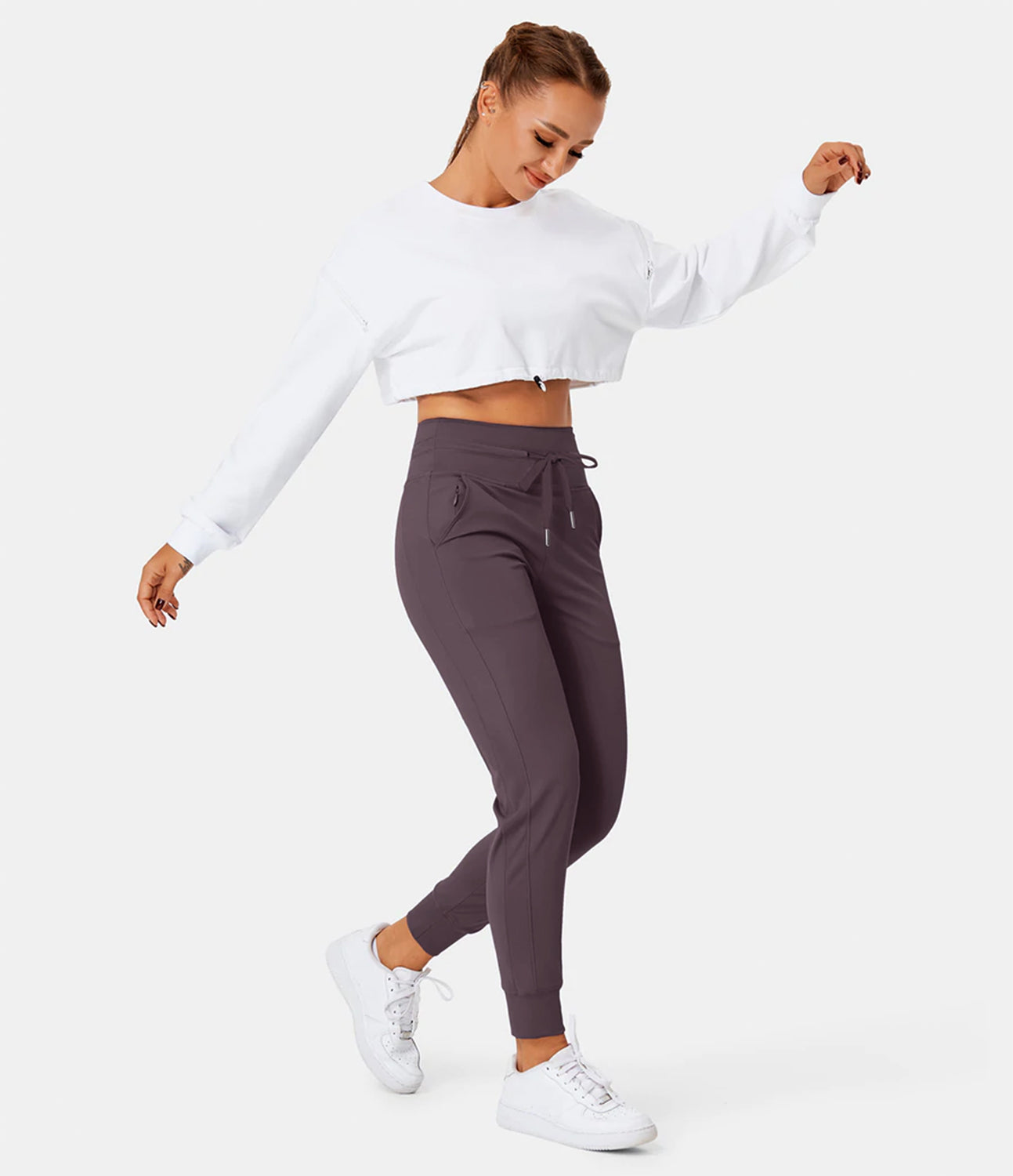 Cloudful™ Air Fabric High Waisted Drawstring Side Pocket Plain Full Length Joggers