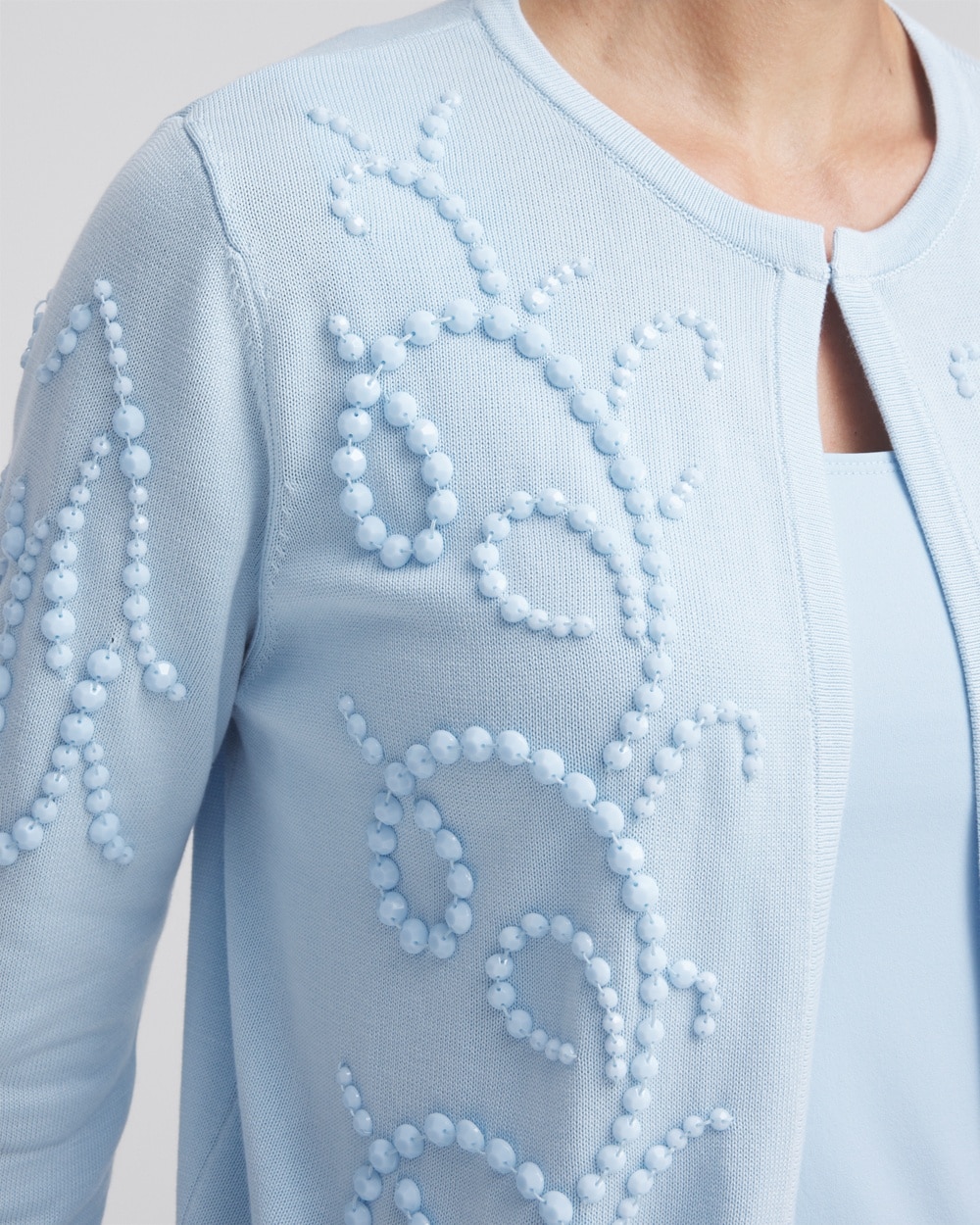 Stay stylish and shielded from chilly days or nights in Chico's new Open-Front Beaded Cardigan. Pair with our Chico's tanks or tees for a perfect match.