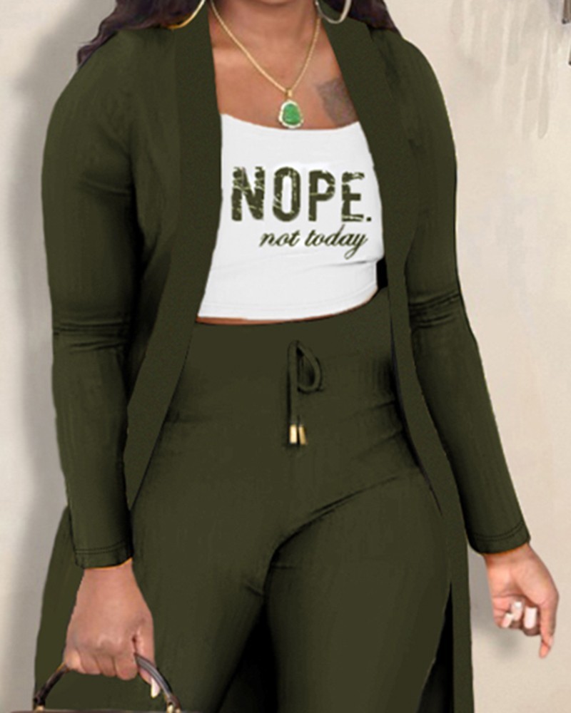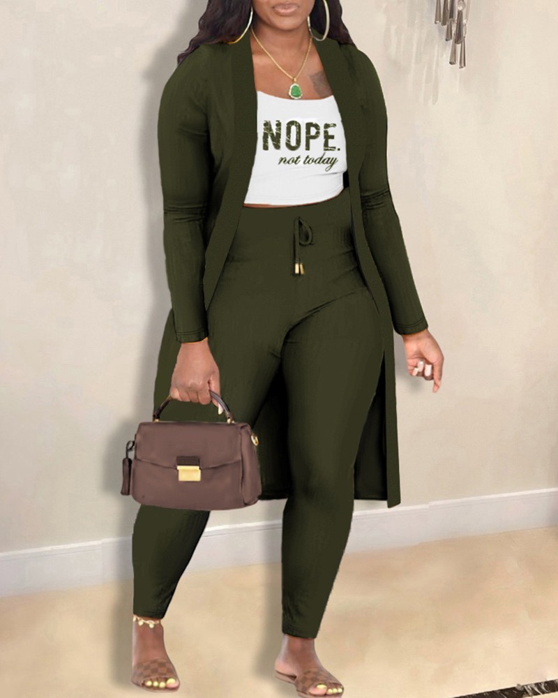 Plus Size Nope Not Today Print Cami Top & Pants Set With Coat