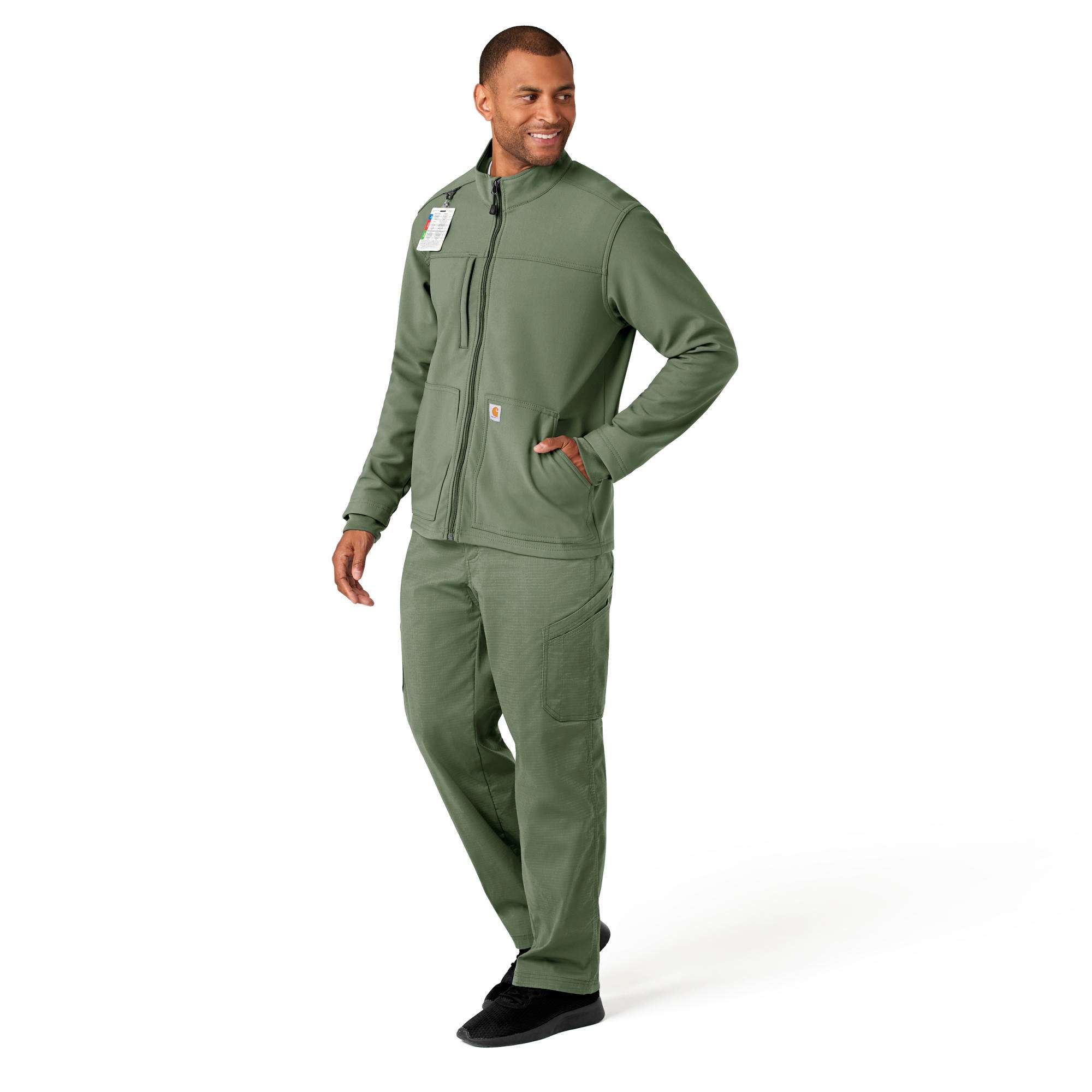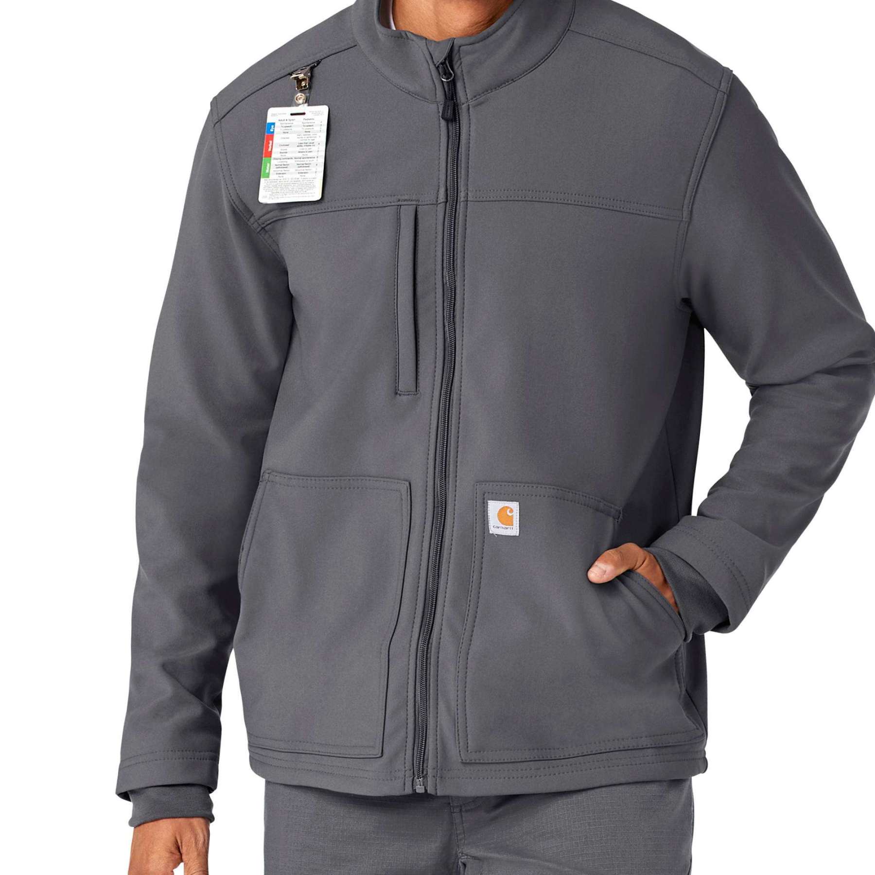 When the shifts are long and the pace is fast, this men's bonded fleece scrub jacket delivers warmth, comfort and easy range of movement with Rugged Flex® stretch technology to help you get the job done. HEIQ ECO DRY technology provides eco-friendly durable water repellency to help keep you dry.