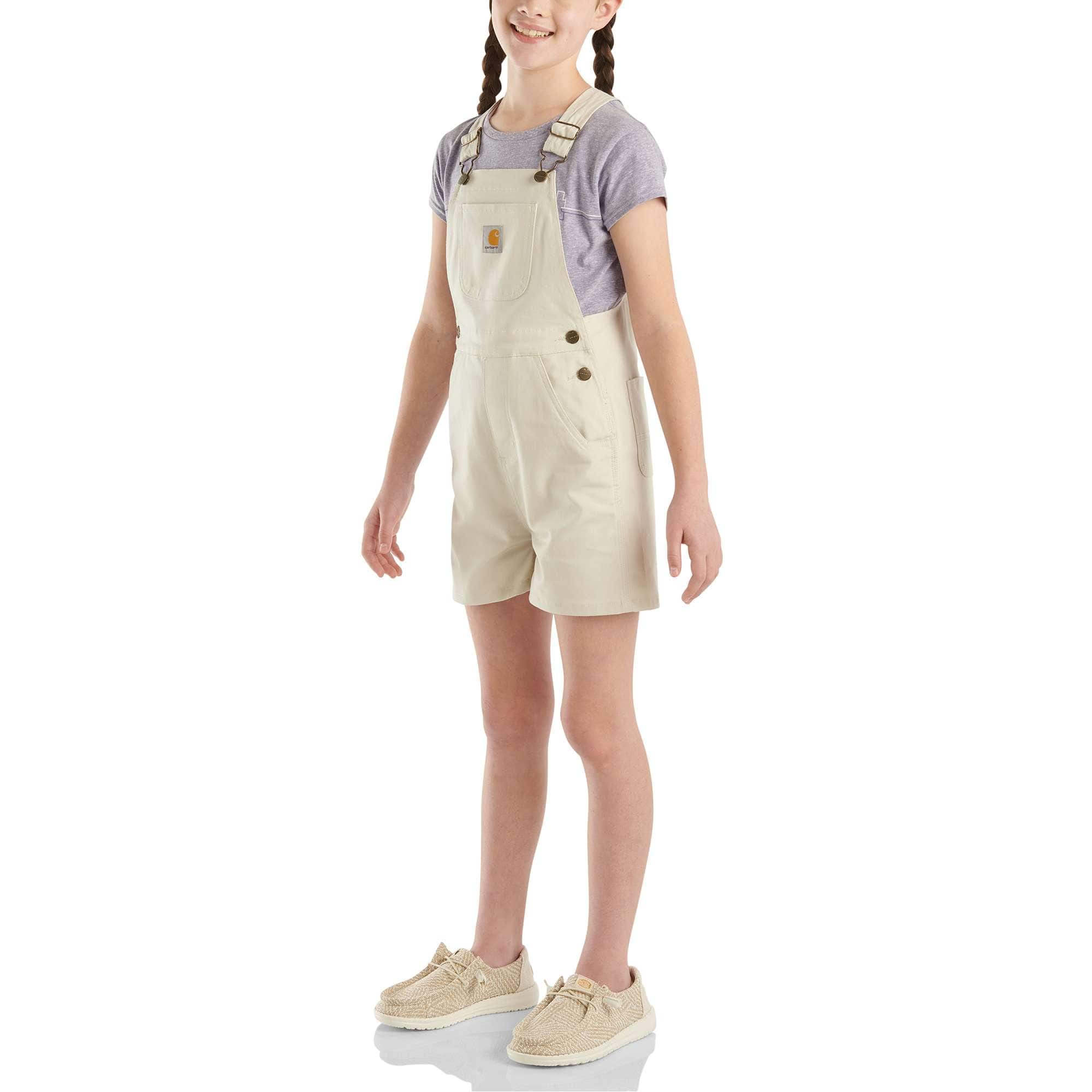 Kids' Carhartt bibs are so durable, the only way to outlast them is to outgrow them. These girls' shortalls are made of cotton canvas with built-in flex, so she can climb up to the hayloft or over fences.