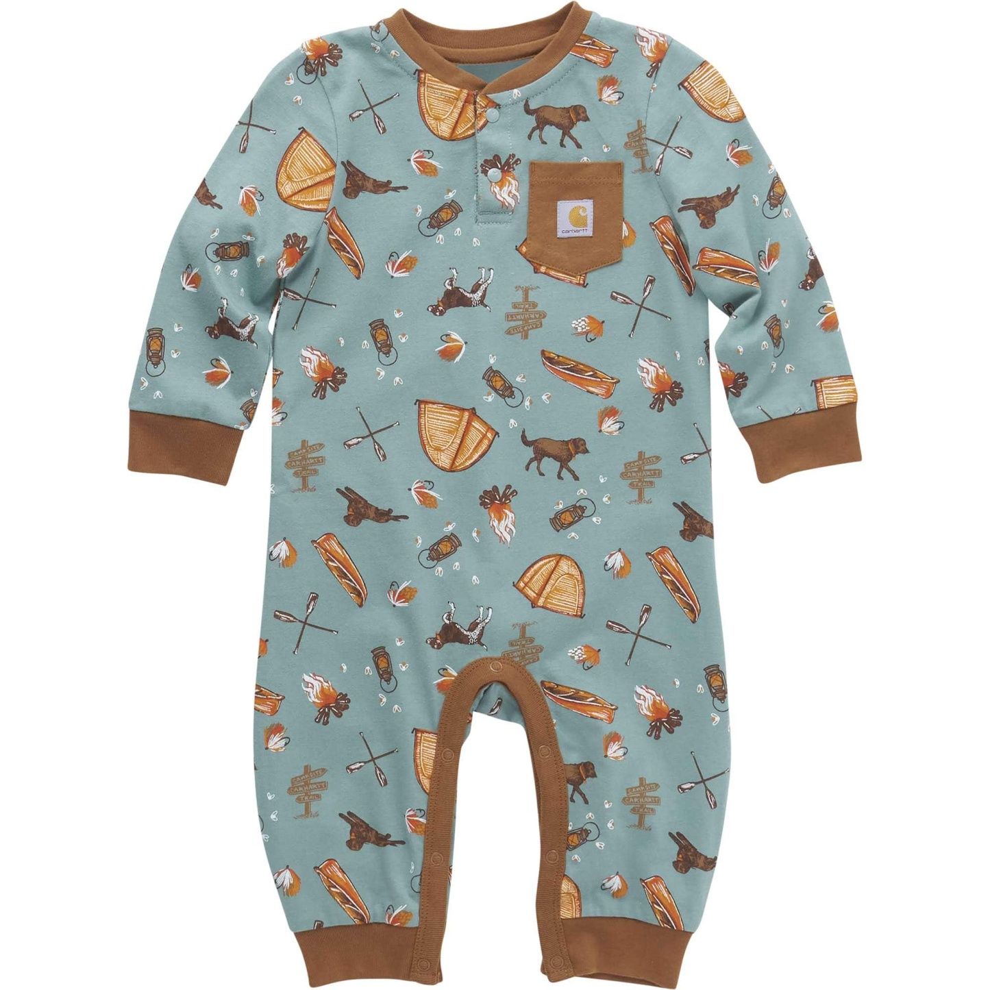 He may not be ready yet to make his own s'mores, but at least he's got the look when he wears this baby boys' coverall. Snaps make it easy to take this bodysuit on and off. A pocket with a sewn-on Carhartt label matches up with the grown-up version.