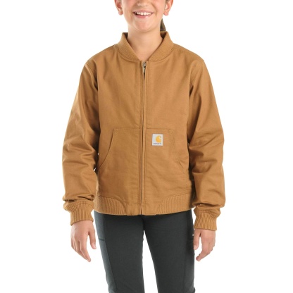 She'll want to wear her girls' Carhartt canvas jacket everywhere. Not only is it stretchy, lasts forever, and is washable, but it has a versatile look that goes with all the things. Mesh on the inside makes it feel airy, so she'll stay comfortable on those in-between-temperatures days.