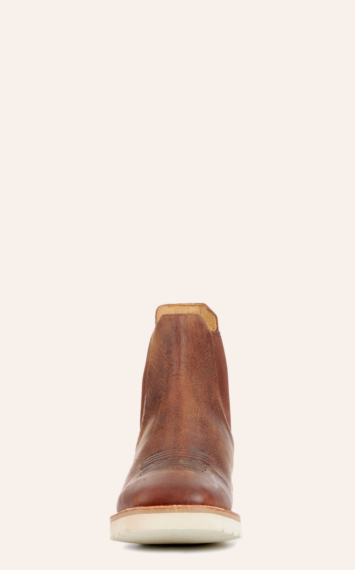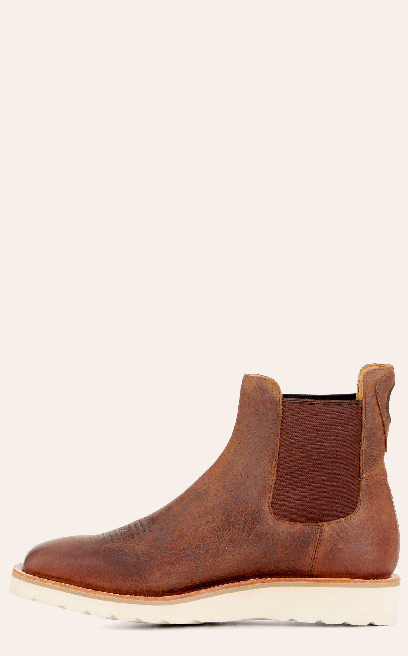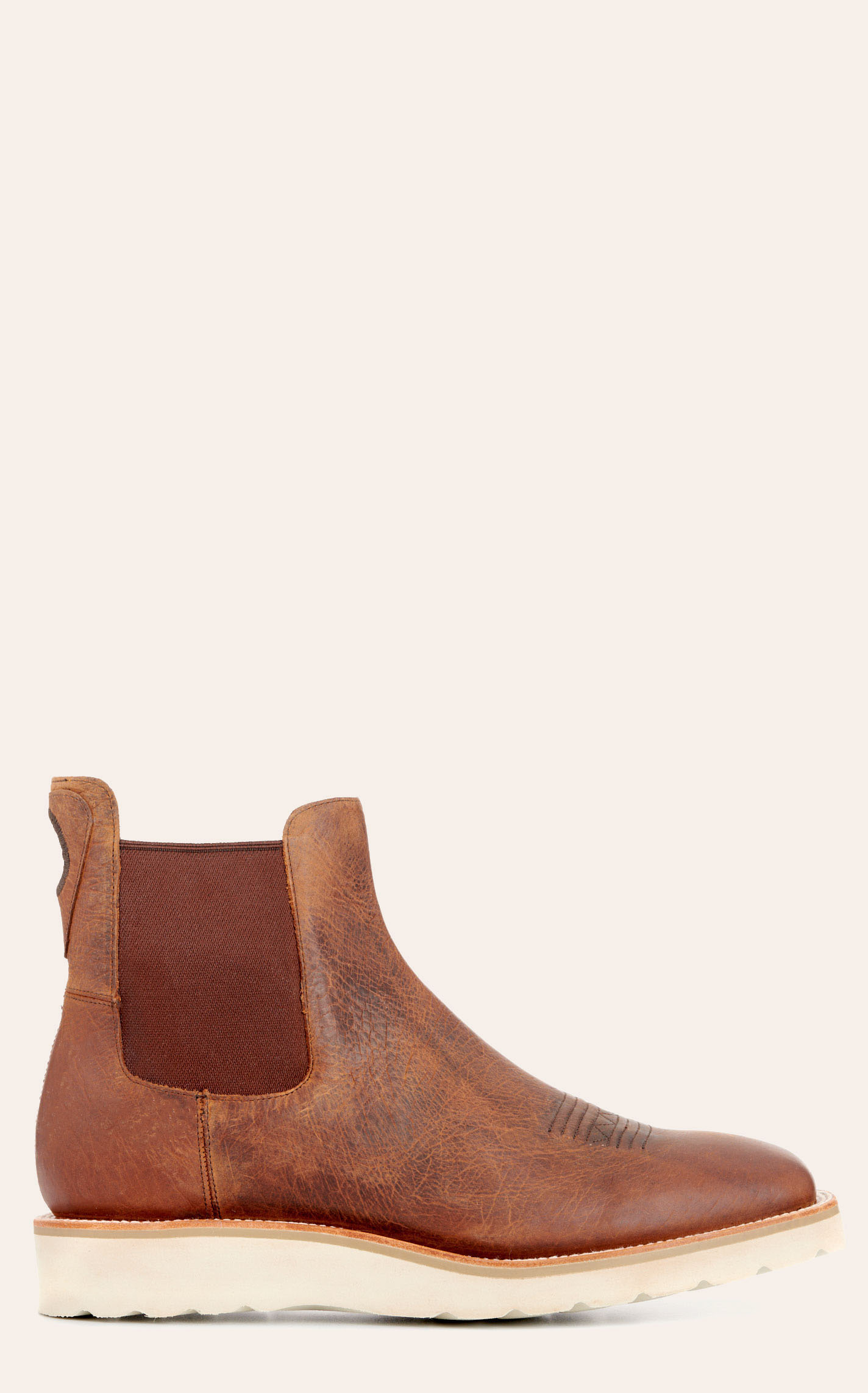 The Anderson Bean Men's Horse Power Distressed Brown Wide Square Toe Chelsea Boots are crafted with timeless quality and rugged style. Featuring a 6" height, these boots are made from top-quality full grain leather, showcasing a rich distressed brown finish that adds character with every wear. The wide square toe offers ample room and comfort, while the double stitch welt construction ensures durability and a secure fit. Built for ease, the elastic gore panels and pull-on design allow for quick and convenient wear, making them perfect for those on the go. The flex groove midsole adds flexibility and support for all-day comfort, while the swedge heel provides a stable base for walking or working. Whether you're in the city or the countryside, these boots deliver the same high standards Anderson Bean is known for in the Horse Power Collection. Designed for a generous fit and equipped with a cushioned insole, these Chelsea boots offer a blend of practicality and style that will serve you well for years to come.