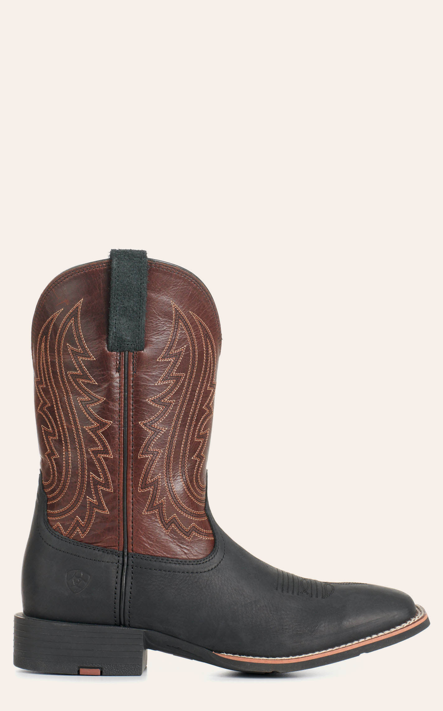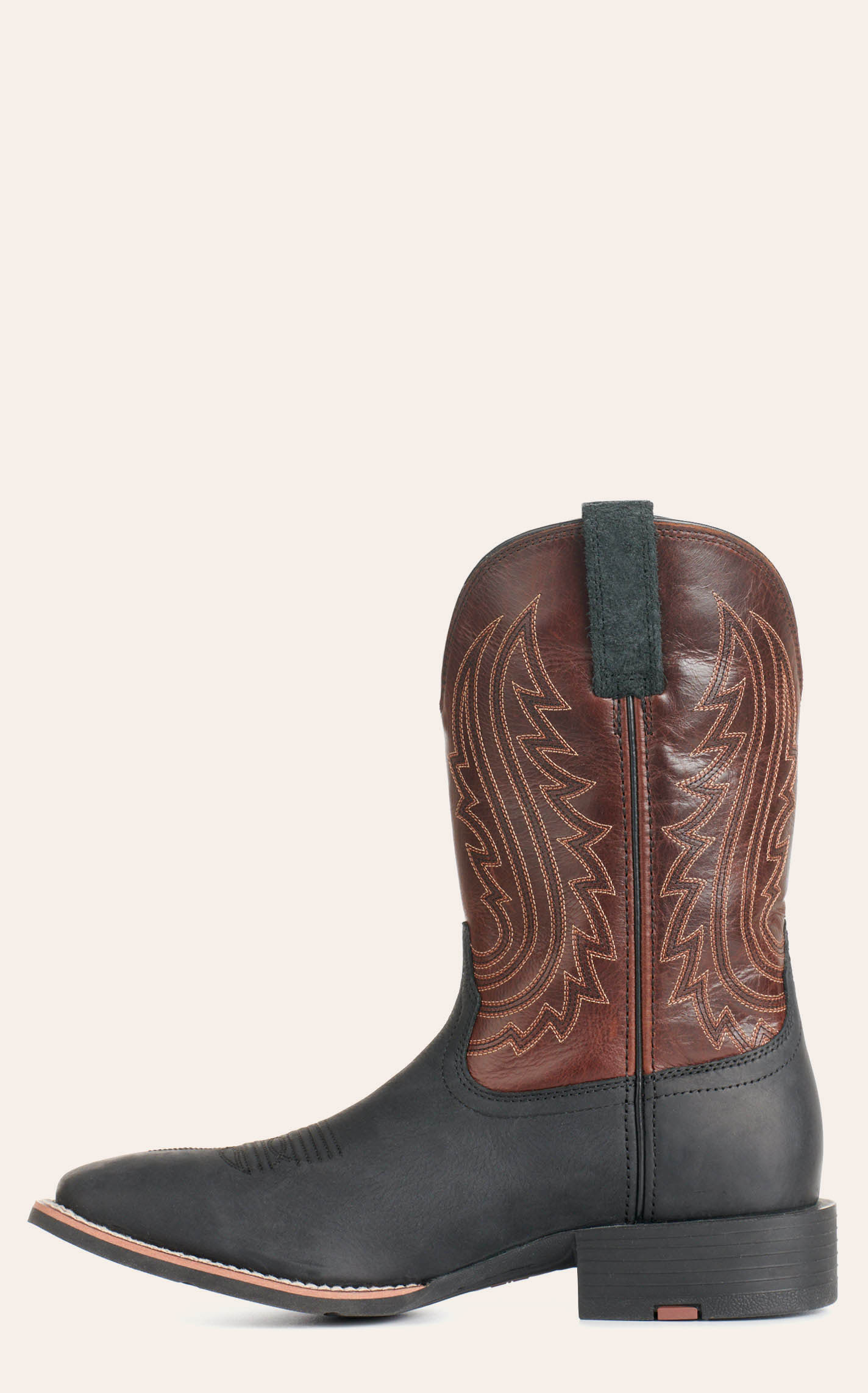 Ariat Men's Sport Big Country Black and Mahogany Wide Square Toe Cowboy Boots
