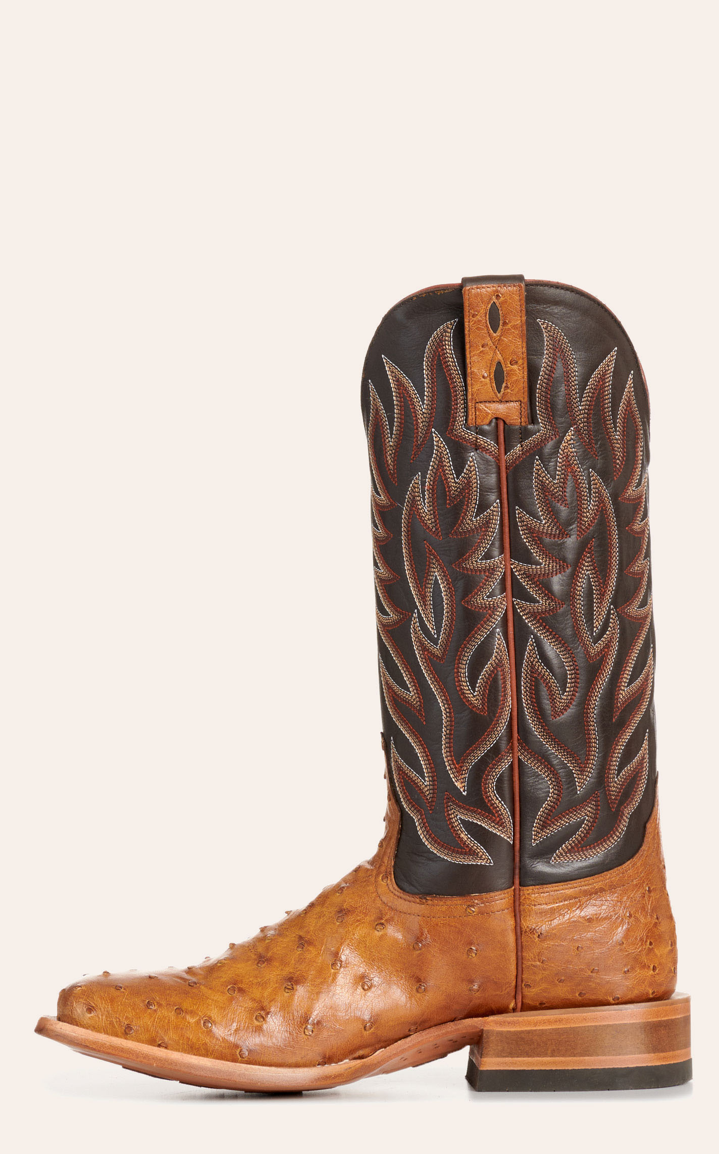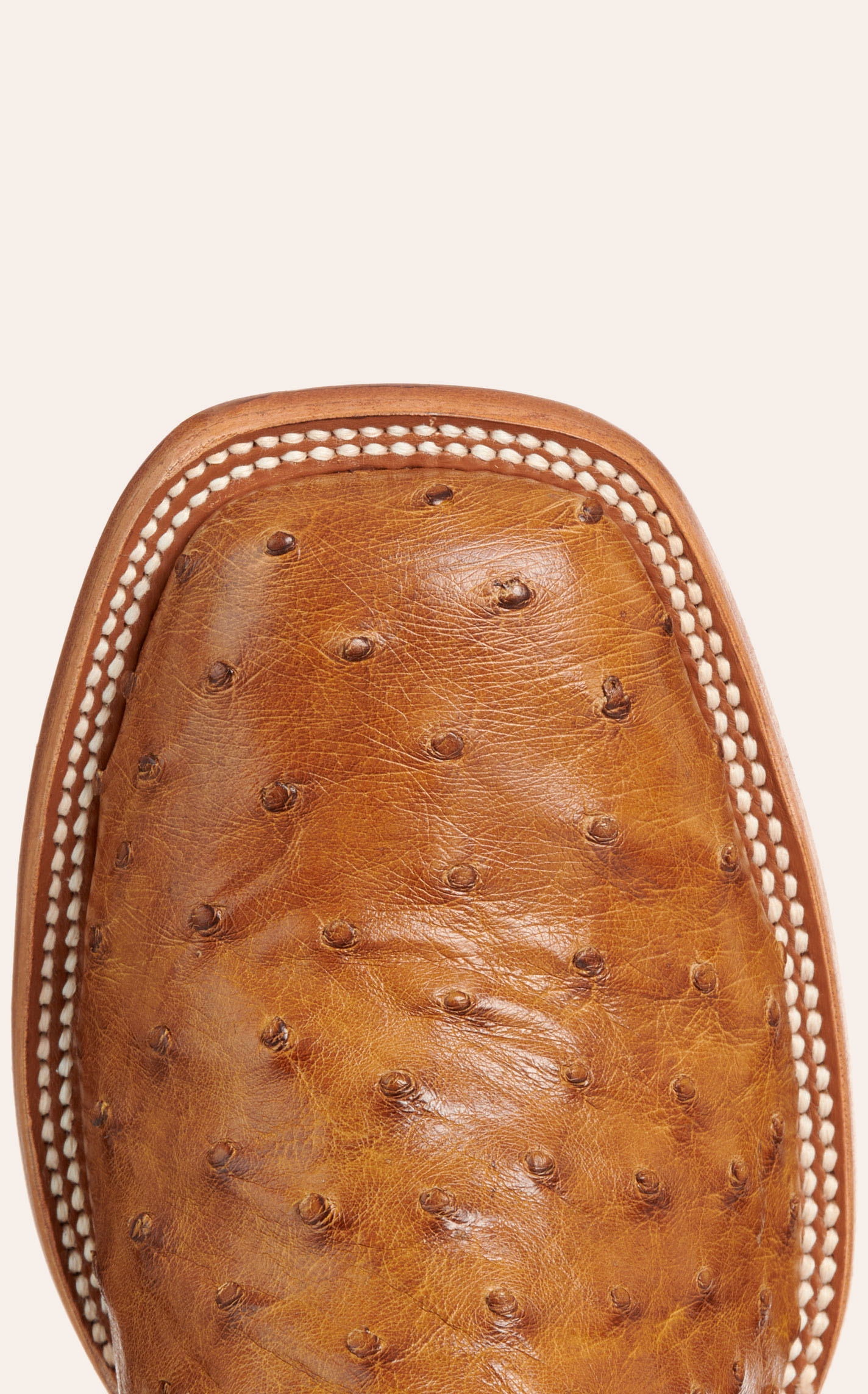 Key Features: The full quill ostrich foot delivers standout texture with lasting durability. A leather-covered cushioned insole provides comfort without losing its shape over time. The wide square toe and block heel create a stable fit, while the leather outsole adds flexibility underfoot with a traditional Western finish.