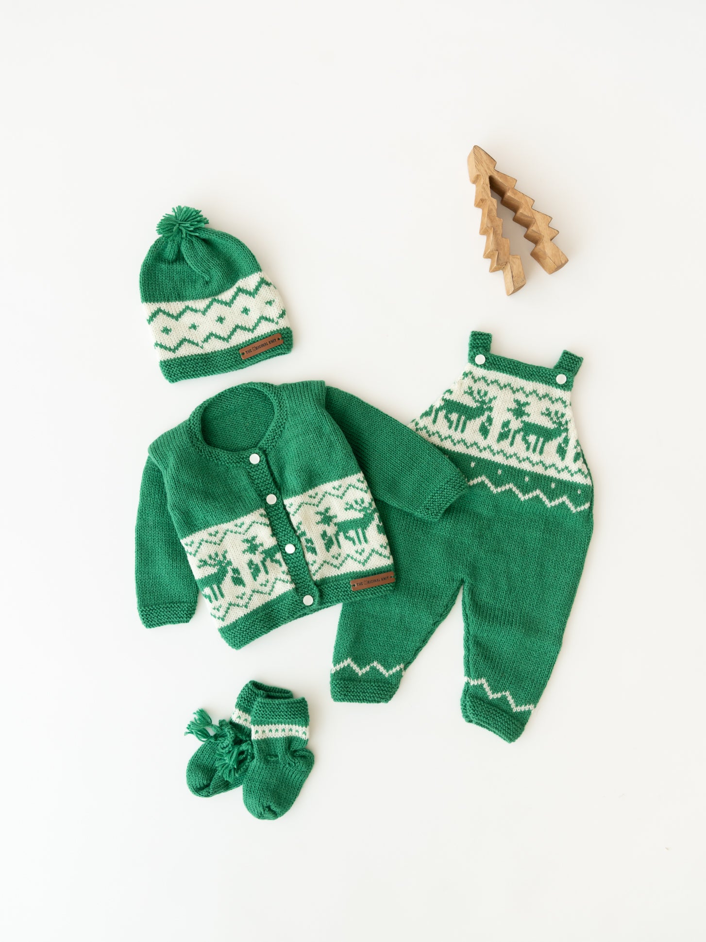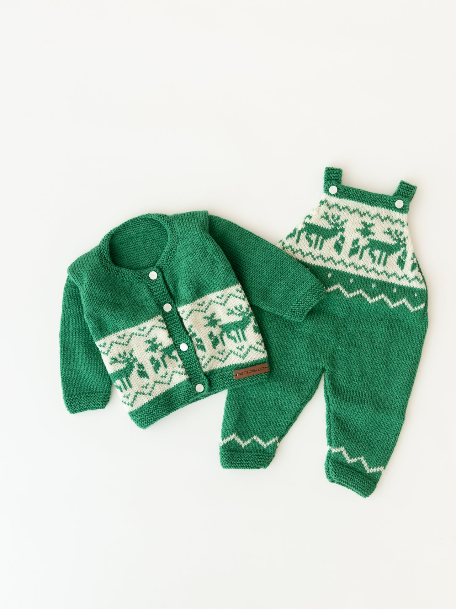 Reindeer pattern, Sweater Set with Dungaree / Pyjama With Cap and socks, Sweater has a round neck, long sleeves, button closure, ribbed hem.