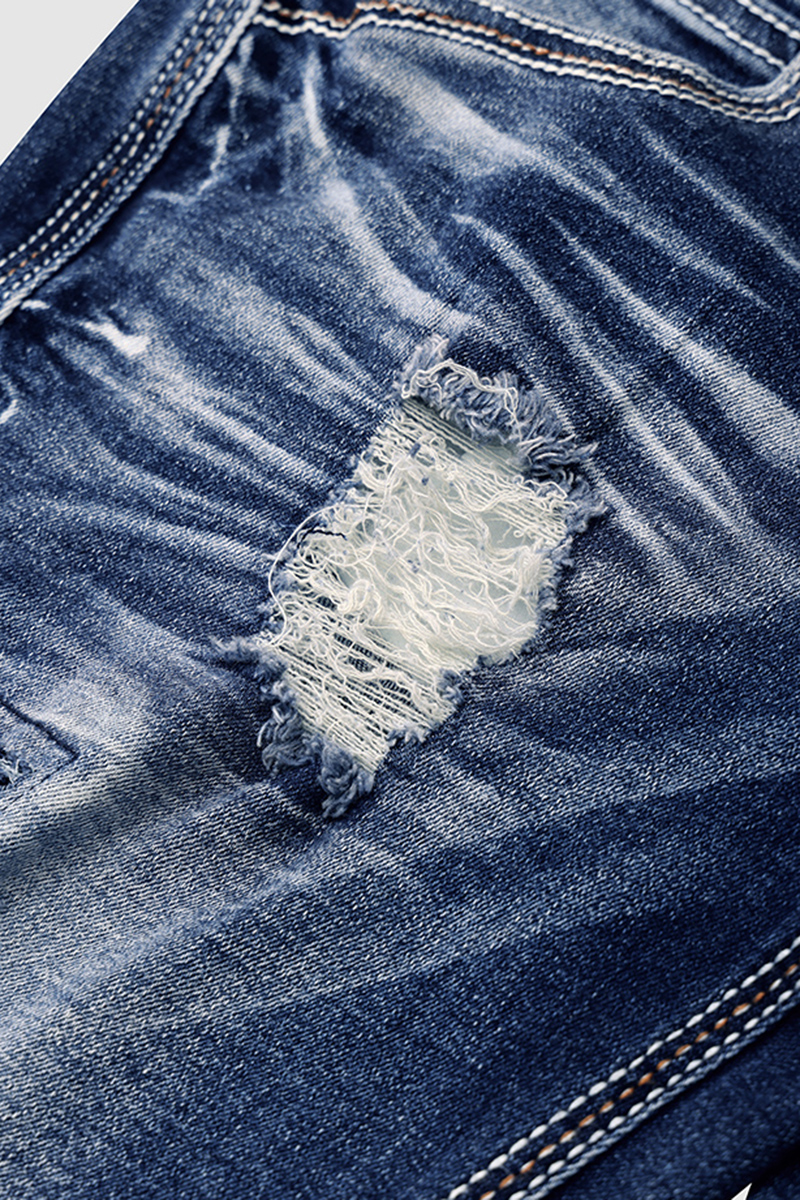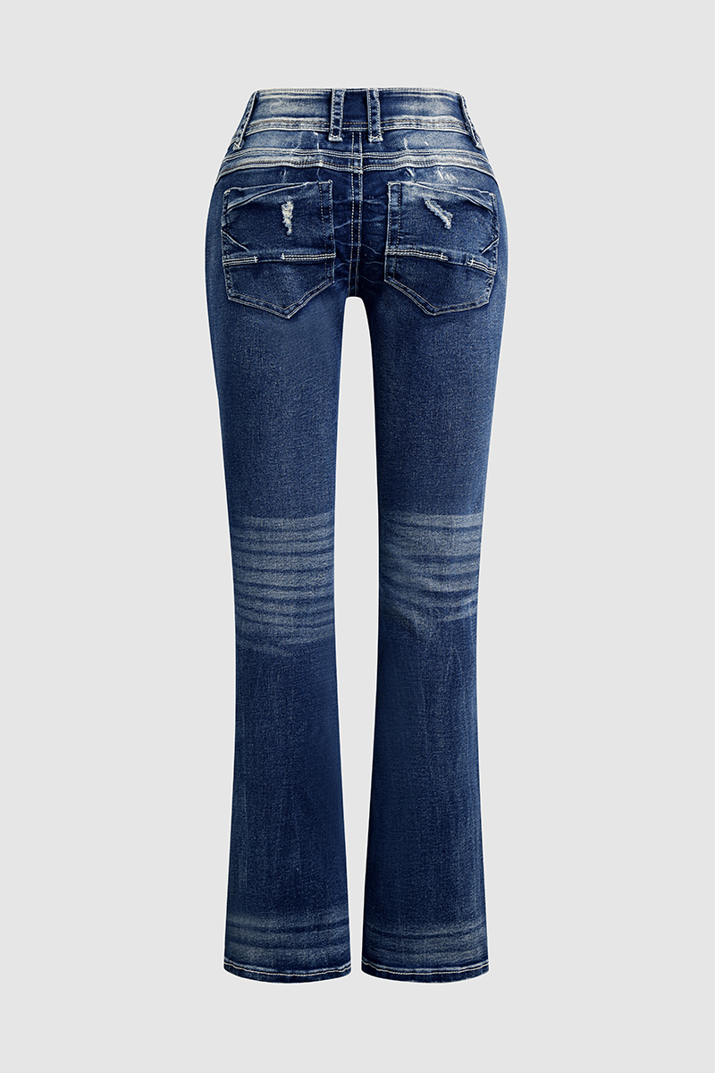 Ripped Contrast Stitch Mid Rise Bootcut Jeans