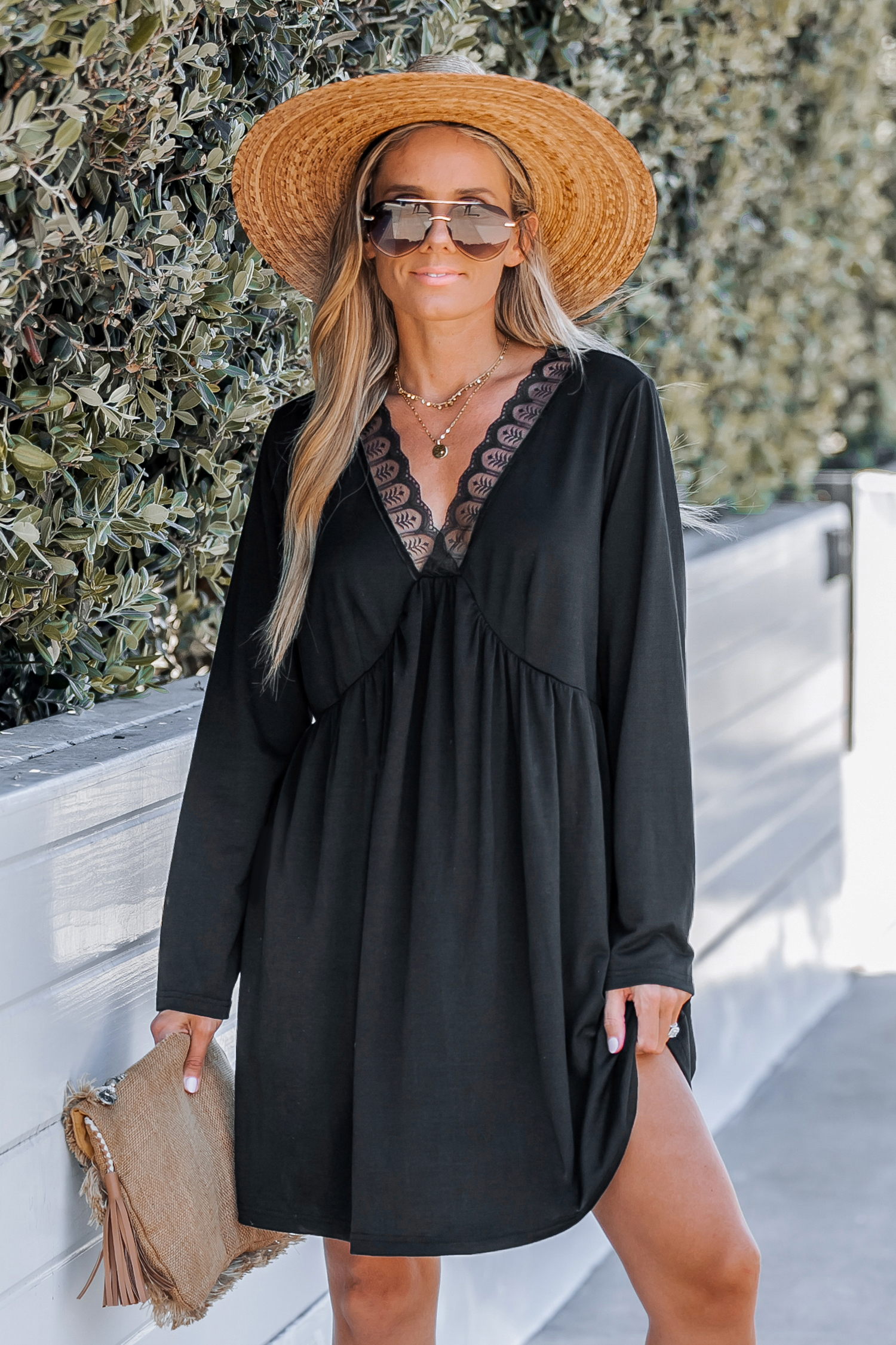 Dive into elegance with our Scalloped Lace V-Neck Mini Dress. The delicate lace and charming scalloped neckline create a dress that's perfect for showcasing both grace and beauty.