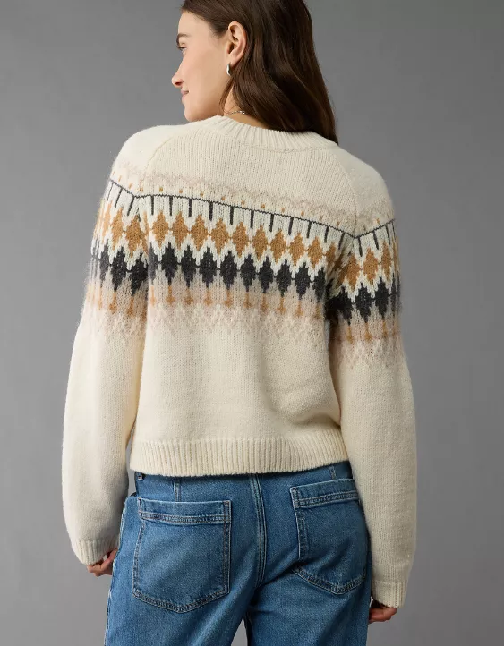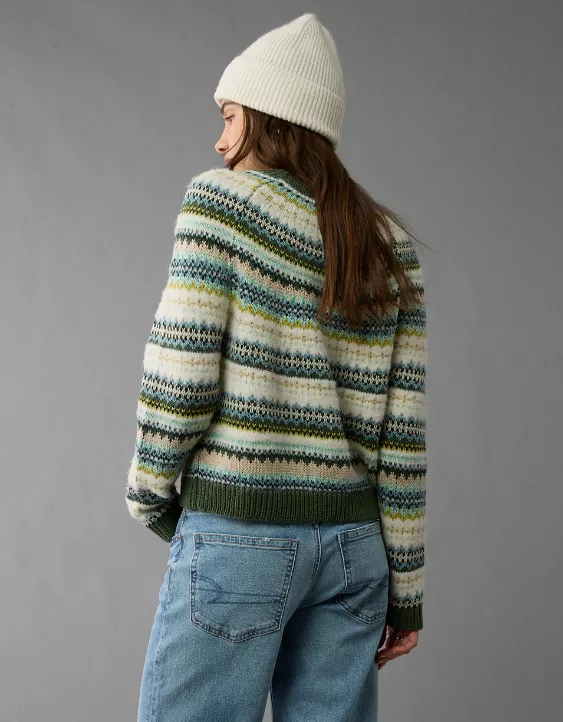 Spread joy in this festive fairisle sweater, made from a ridiculously soft, fuzzy yarn.