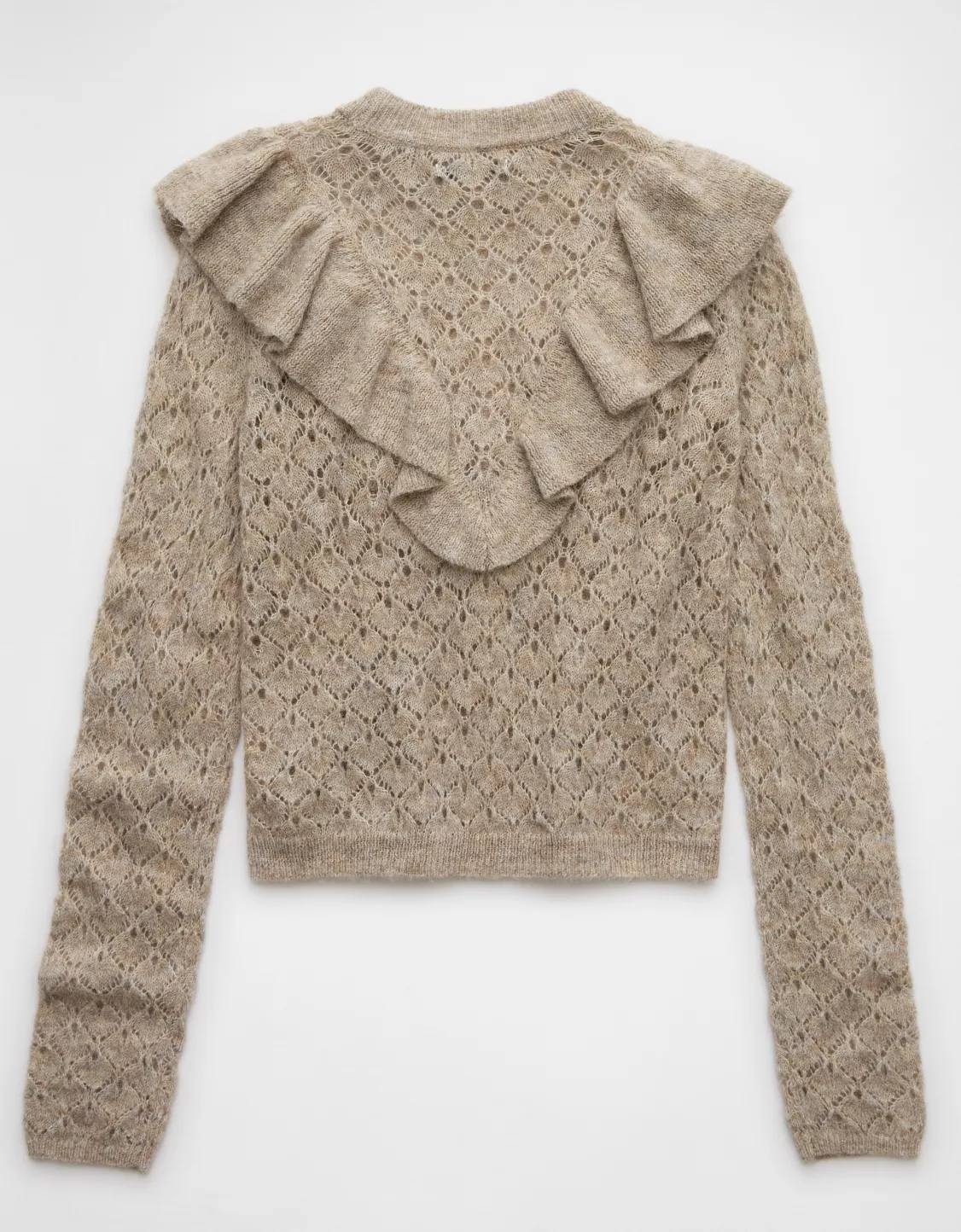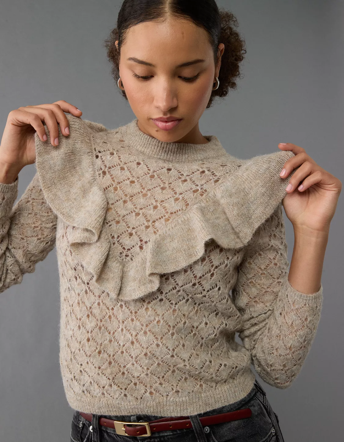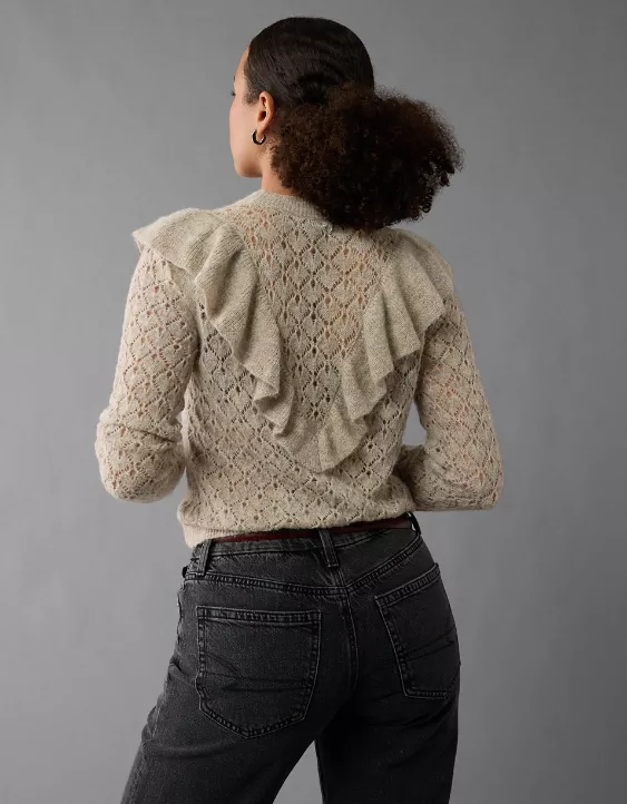 Constructed from a lightweight, airy open knit, this fancy sweater is perfect for a classy holiday look.