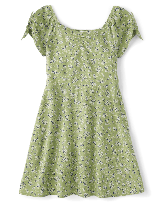 Girls Floral Tie Sleeve Dress