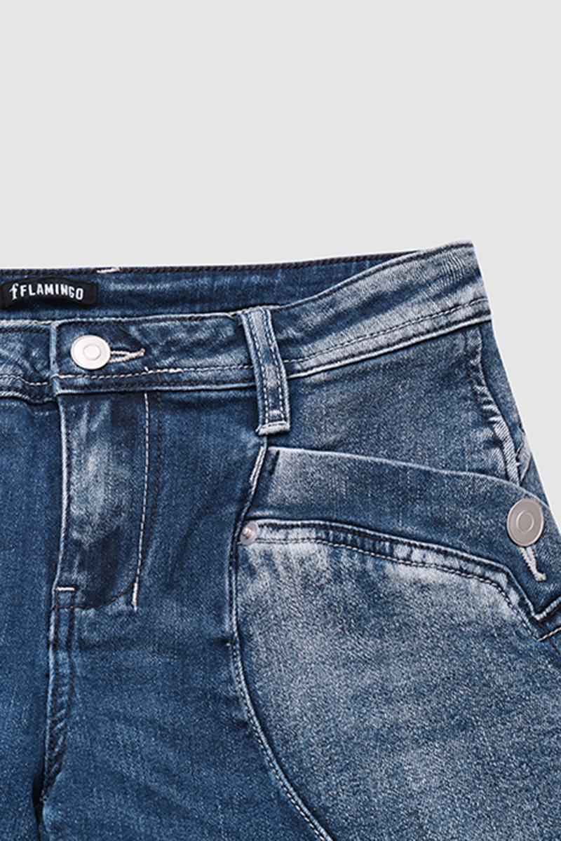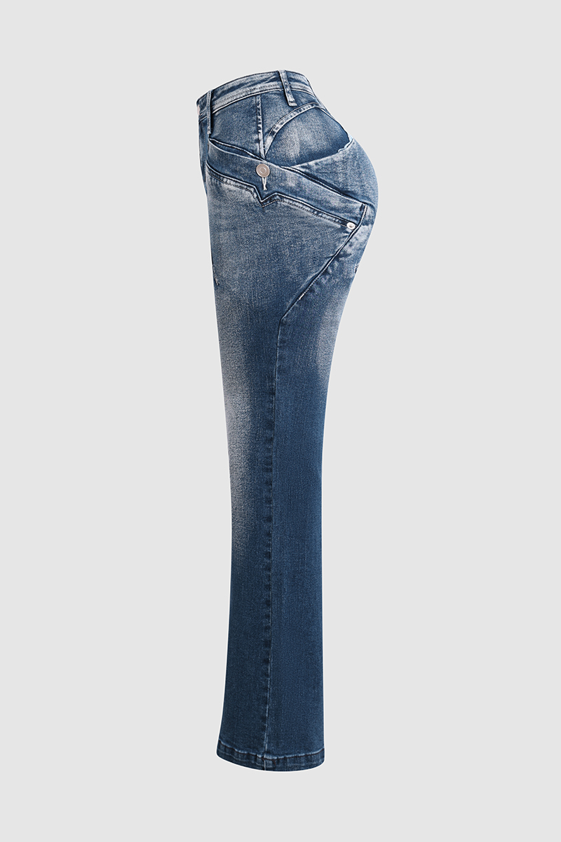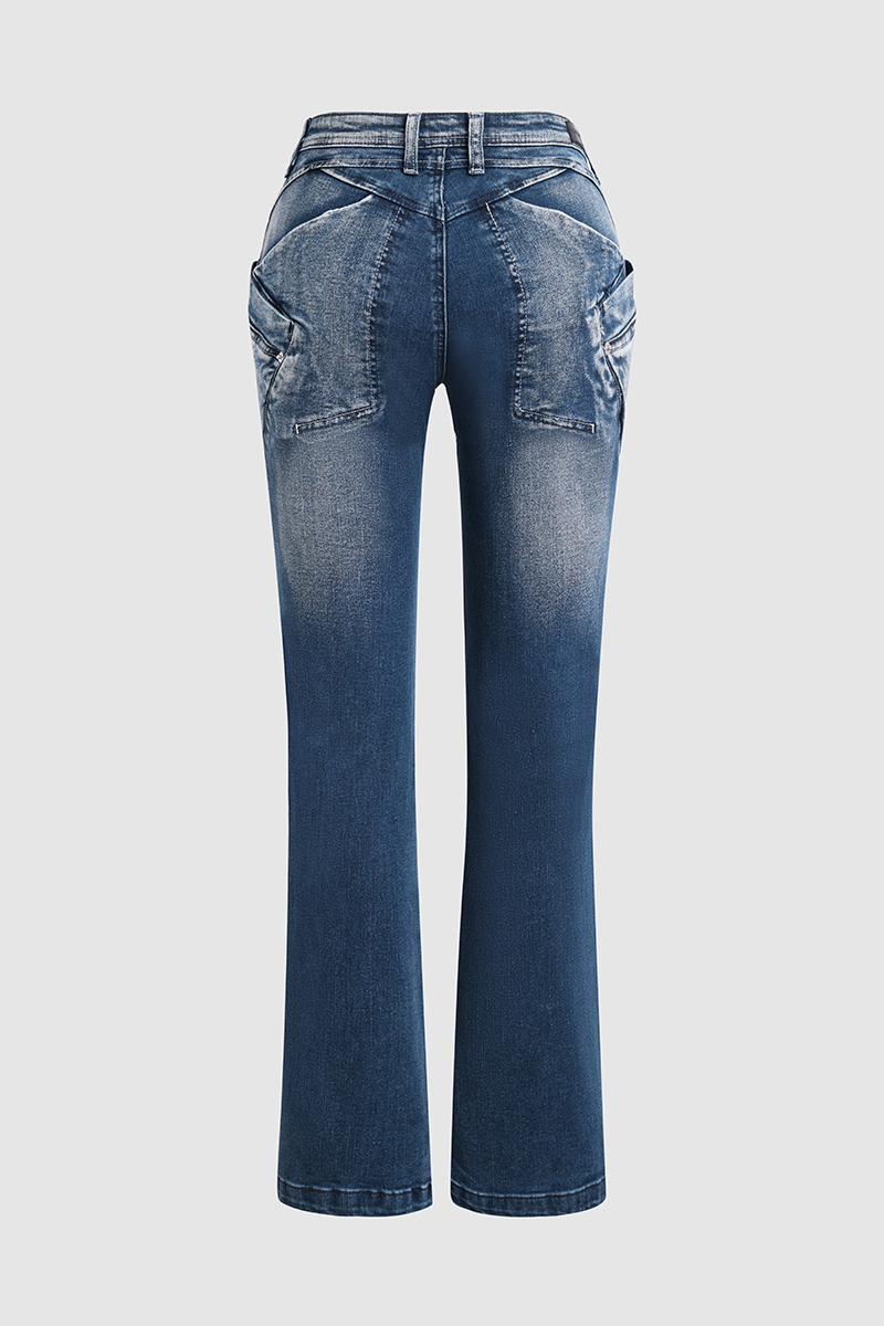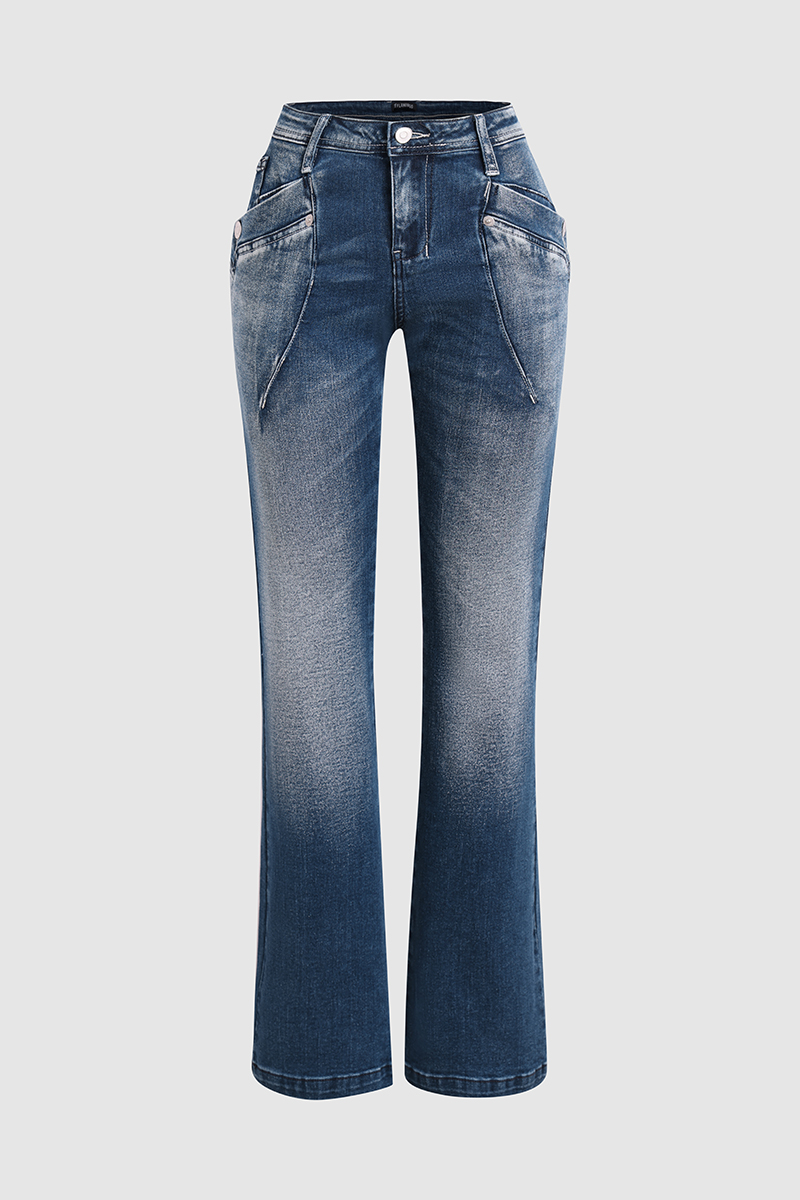 Washed Overlap Pocket Side Low Rise Bootcut Jeans