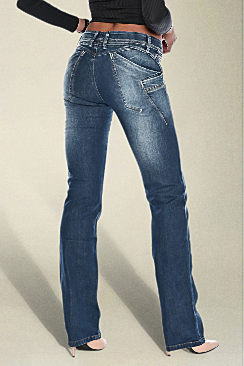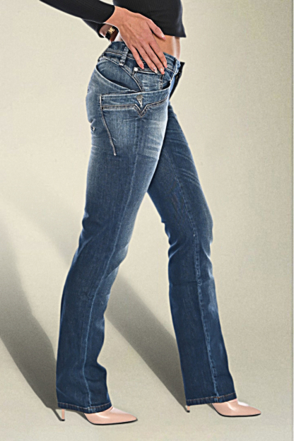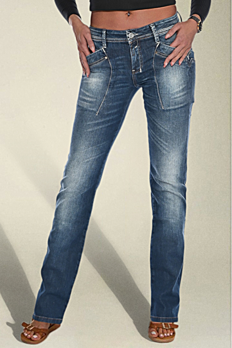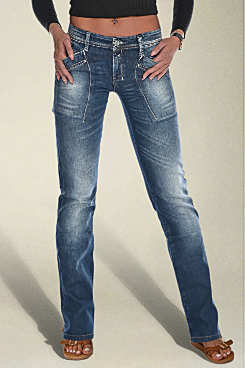 Washed Overlap Pocket Side Low Rise Bootcut Jeans