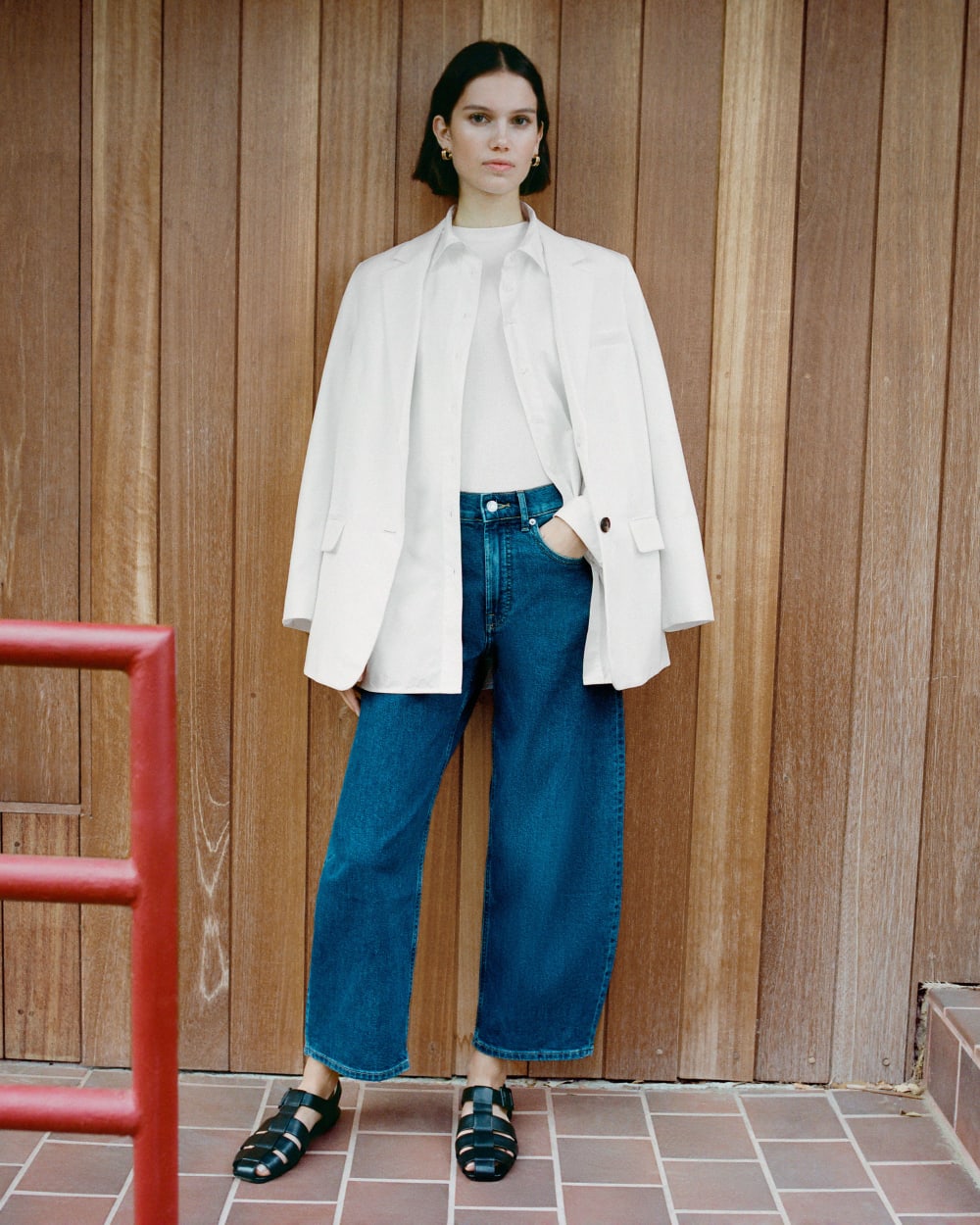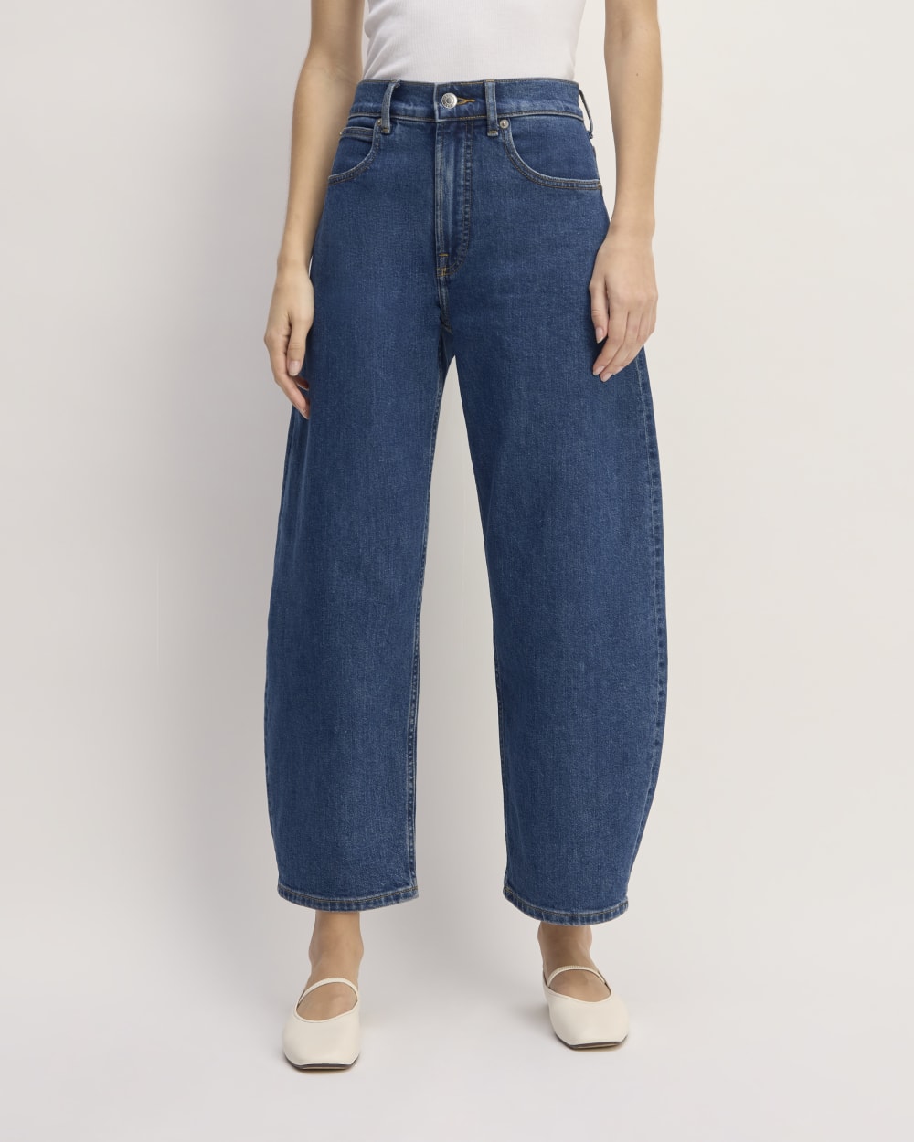Shape up. Update your denim lineup with the Way-High® Curve Jean. Featuring a high-waisted silhouette with a statement curve leg that hits at the ankle, it’s made with organic low-stretch cotton for that shaped effect.